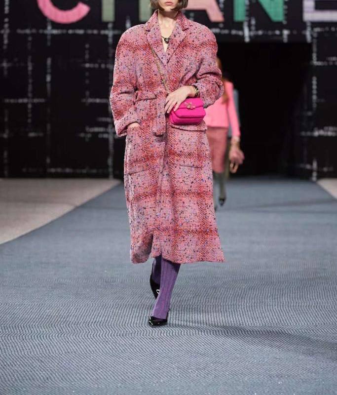 Пальто Chanel LUX-79292 – это воплощение элегантности и стиля. Пальто выполнено в нежно-розовом цвете с текстурированной поверхностью. Оно идеально подойдет для создания утонченных образов на каждый день или для особых случаев.