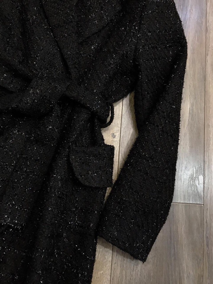 Элегантное пальто Chanel ОДЖ-344 выполнено в классическом стиле, идеальном для создания утонченных образов. Его фактурная ткань с вкраплениями серебристых нитей придает изделию особый шик, а приталенный силуэт и пояс подчеркивают женственность фигуры. Это пальто станет незаменимой вещью в гардеробе ценительниц элегантности и высокого качества.