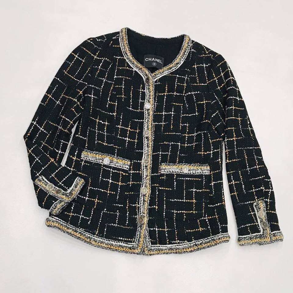 Женский жакет Chanel LUX-11072 — это воплощение элегантности и утонченного стиля, выполненный в классическом для бренда дизайне. Его текстурированная ткань с геометрическим принтом в черных, белых и золотистых тонах создает изысканный образ. Этот жакет идеально подходит для создания деловых и вечерних нарядов, придавая каждому образу неповторимое очарование.