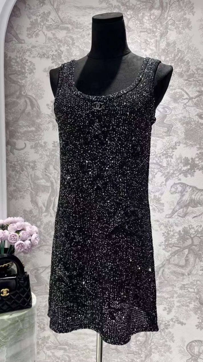 Платье Chanel LUX-100868 – это изысканное платье, которое воплощает в себе роскошь и элегантность. Черное платье украшено сверкающими элементами, создающими эффектный блеск. Его стиль подходит для вечерних мероприятий и особых случаев.