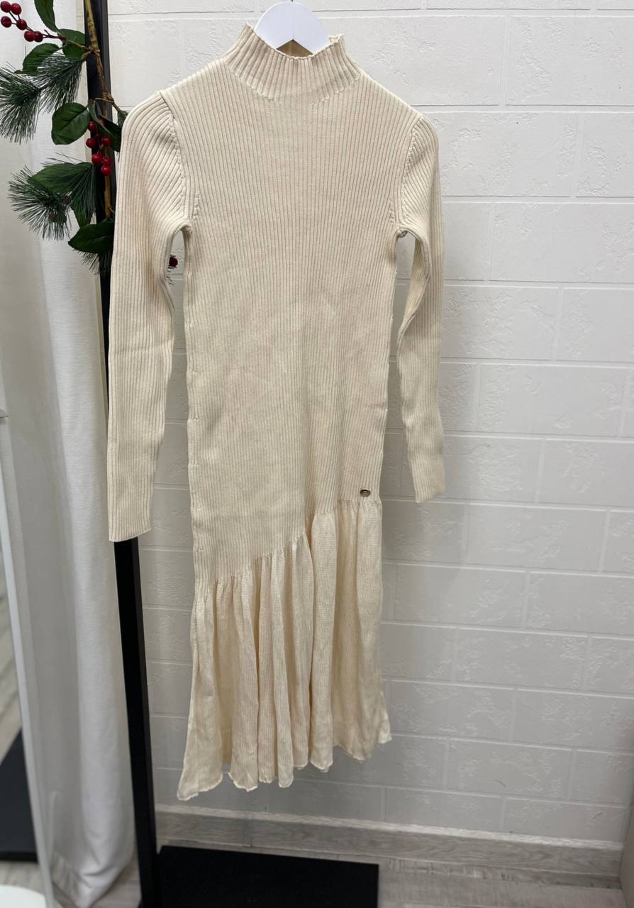 Платье Chanel LUX-113268 — элегантное платье в стиле casual. Платье выполнено в молочном оттенке, имеет текстурный узор, облегающий силуэт в верхней части и расклешенную юбку. Идеально подойдет для создания изысканного образа на каждый день.