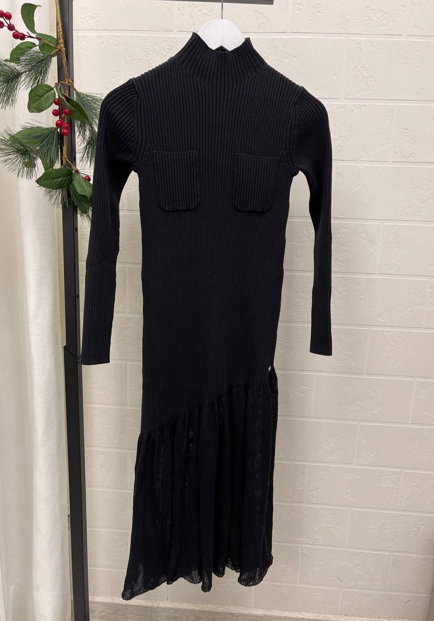 Платье Chanel LUX-113611 — элегантное платье черного цвета, сочетающее в себе современный дизайн и классическую элегантность. Платье подчеркивает фигуру и создает утонченный образ, подходит для различных мероприятий, от деловых встреч до вечерних выходов.