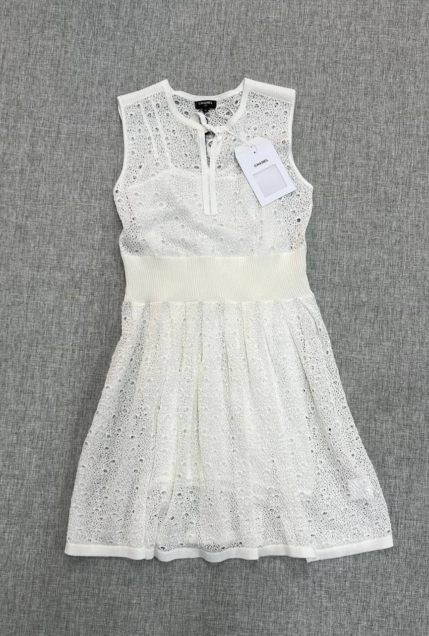 Платье Chanel LUX-119452 - это воплощение элегантности и утонченности. Белоснежное платье выполнено в классическом стиле Chanel с использованием кружевного узора, создающего изысканный и воздушный образ. Это платье идеально подойдет для особых случаев и подчеркнет вашу женственность.