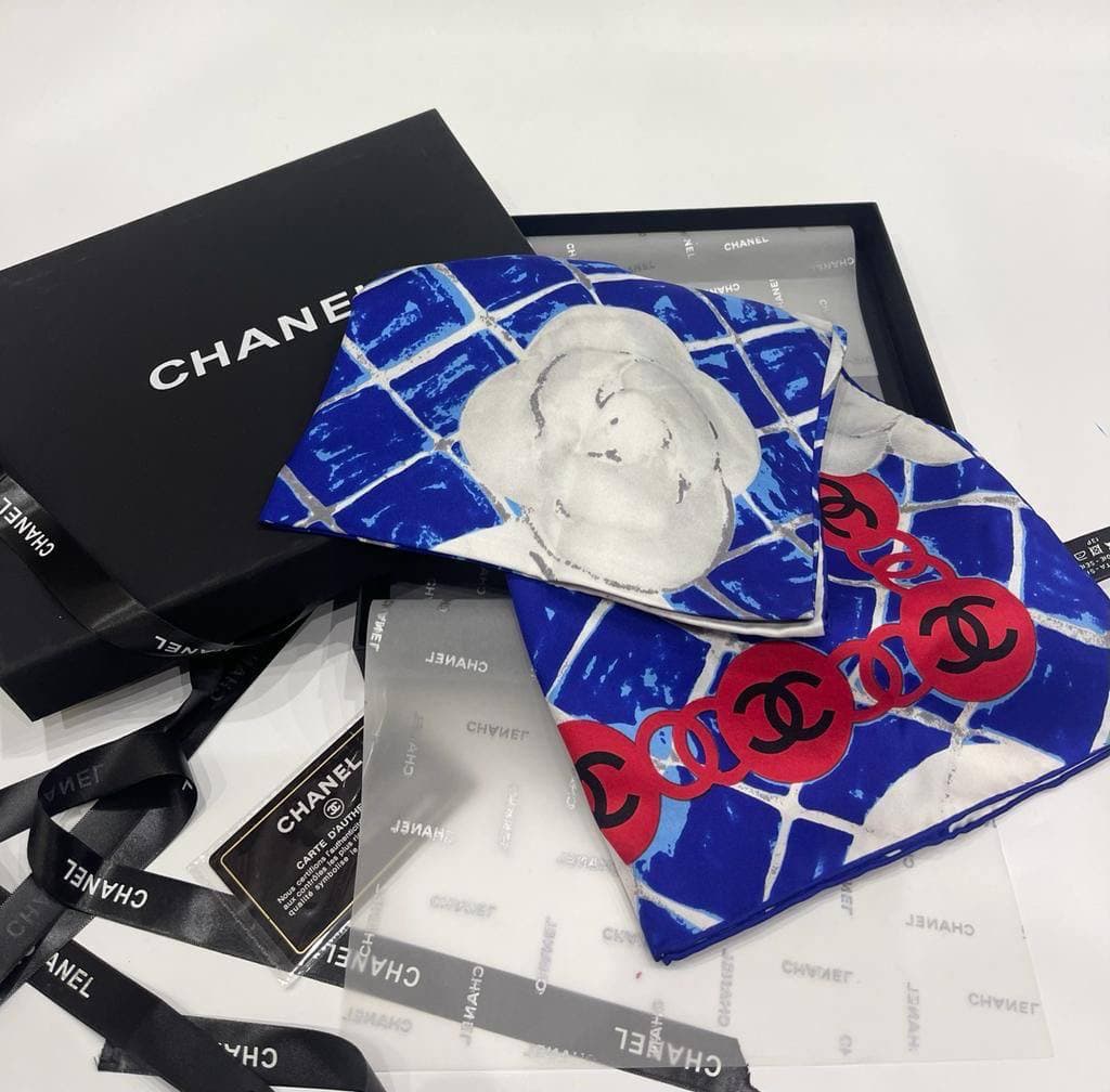 Шелковый платок Chanel LUX-63127 — это элегантный и стильный аксессуар, который добавит изысканности любому образу. Яркий синий фон с узором из белых камелий и красных логотипов Chanel подчеркнет ваш индивидуальный стиль. Этот платок идеально подойдет для женщин, ценящих роскошь и эксклюзивность.