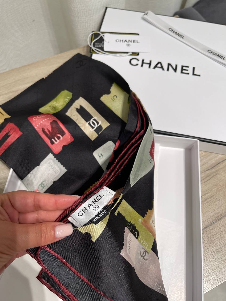 Платок Chanel LUX-120007 — это элегантный аксессуар от известного бренда, сочетающий в себе изысканность и стиль. Платок выполнен в чёрном цвете с красочными элементами дизайна, который напоминает почтовые марки. Этот платок станет прекрасным дополнением к вашему образу, добавив нотку роскоши и утонченности.