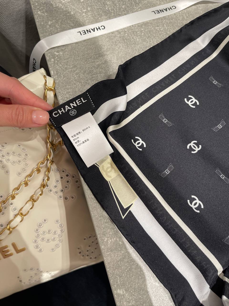 Элегантный платок Chanel LUX-121630 — изысканный аксессуар, добавляющий шарма и утонченности любому образу. Платок отличается своим классическим дизайном с узнаваемым логотипом бренда.