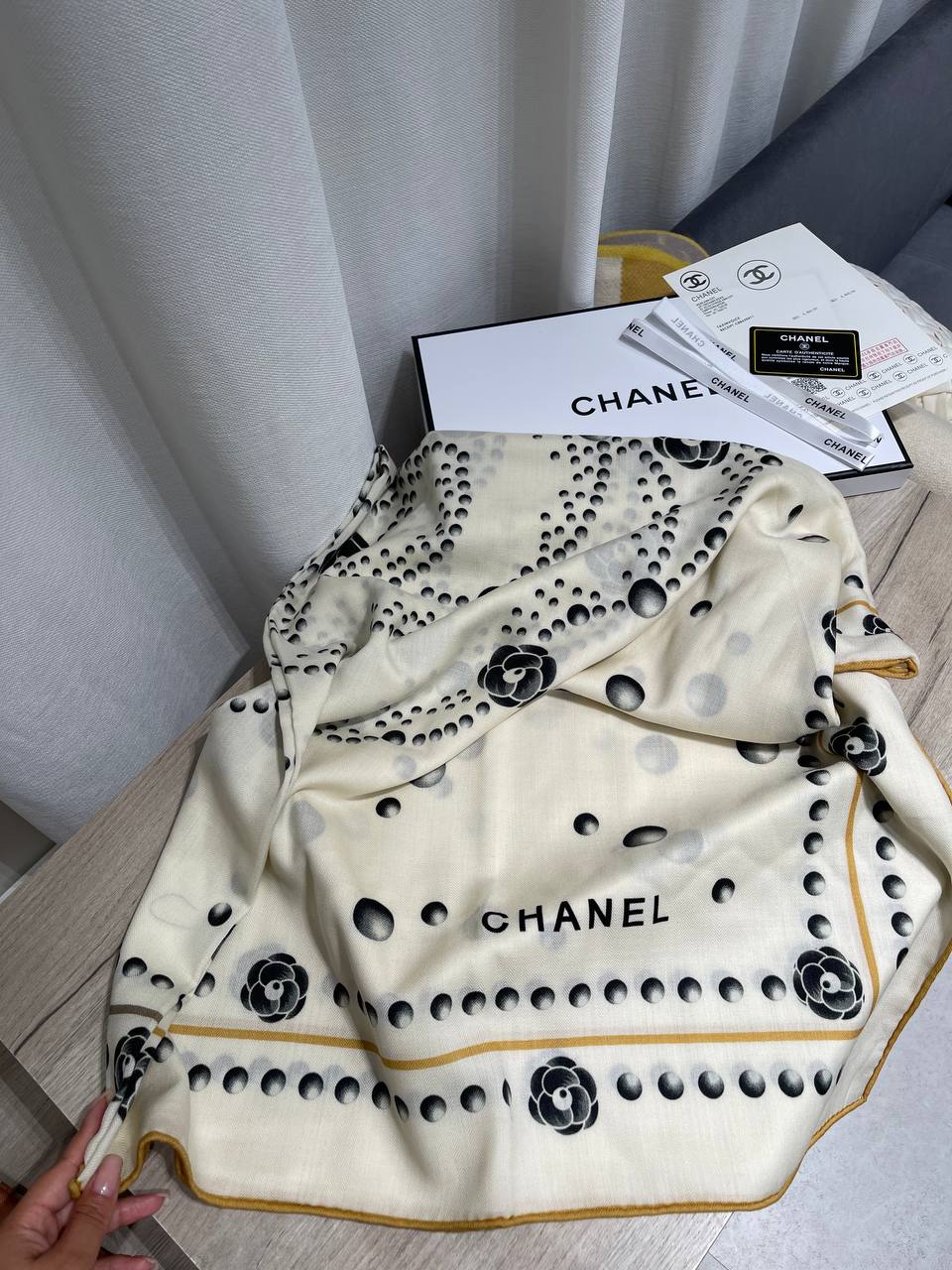 Платок Chanel LUX-122509 — это изысканный аксессуар, выполненный в классическом стиле. Он станет элегантным дополнением к вашему образу, подчеркивая вашу индивидуальность.