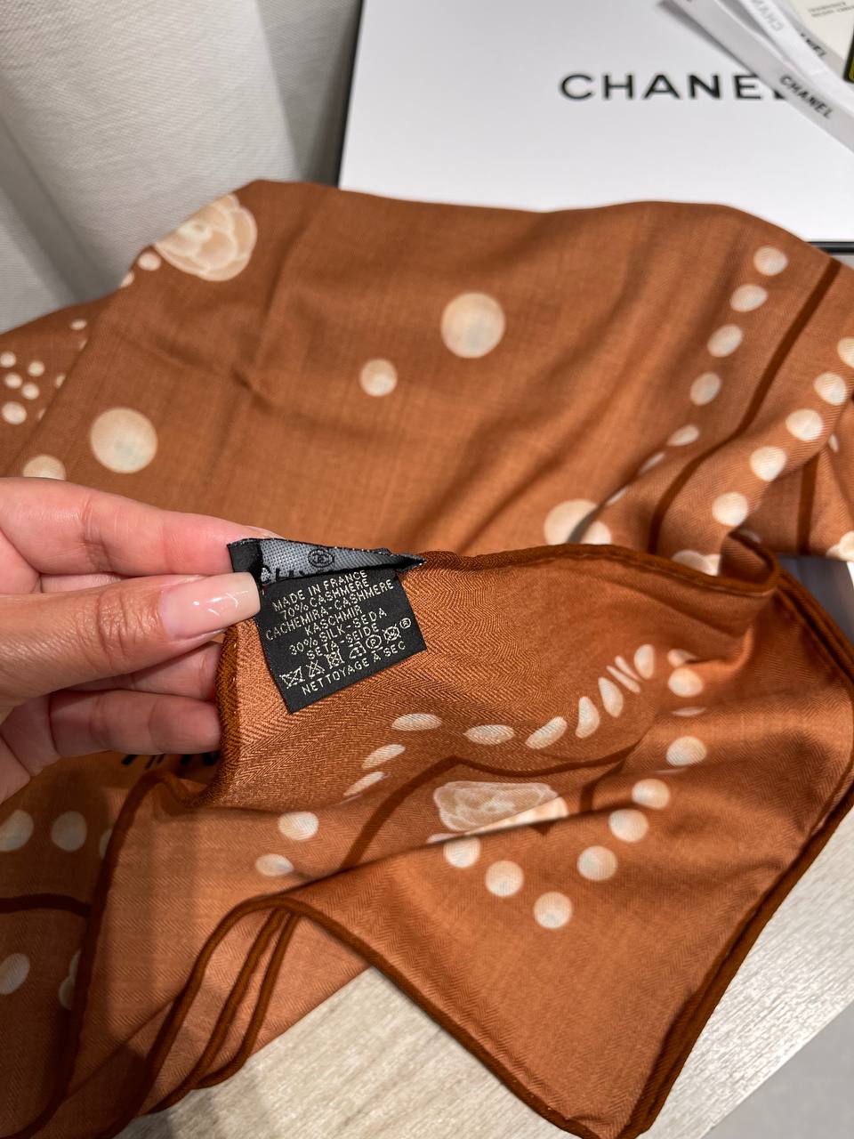 Изысканный платок Chanel LUX-122510 – это элегантный аксессуар, который добавит шарма любому образу. Он выполнен в теплых тонах с оригинальным узором из точек и фирменных элементов бренда.