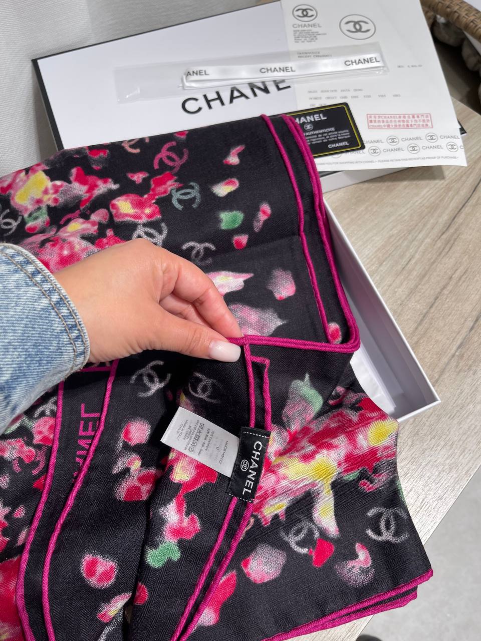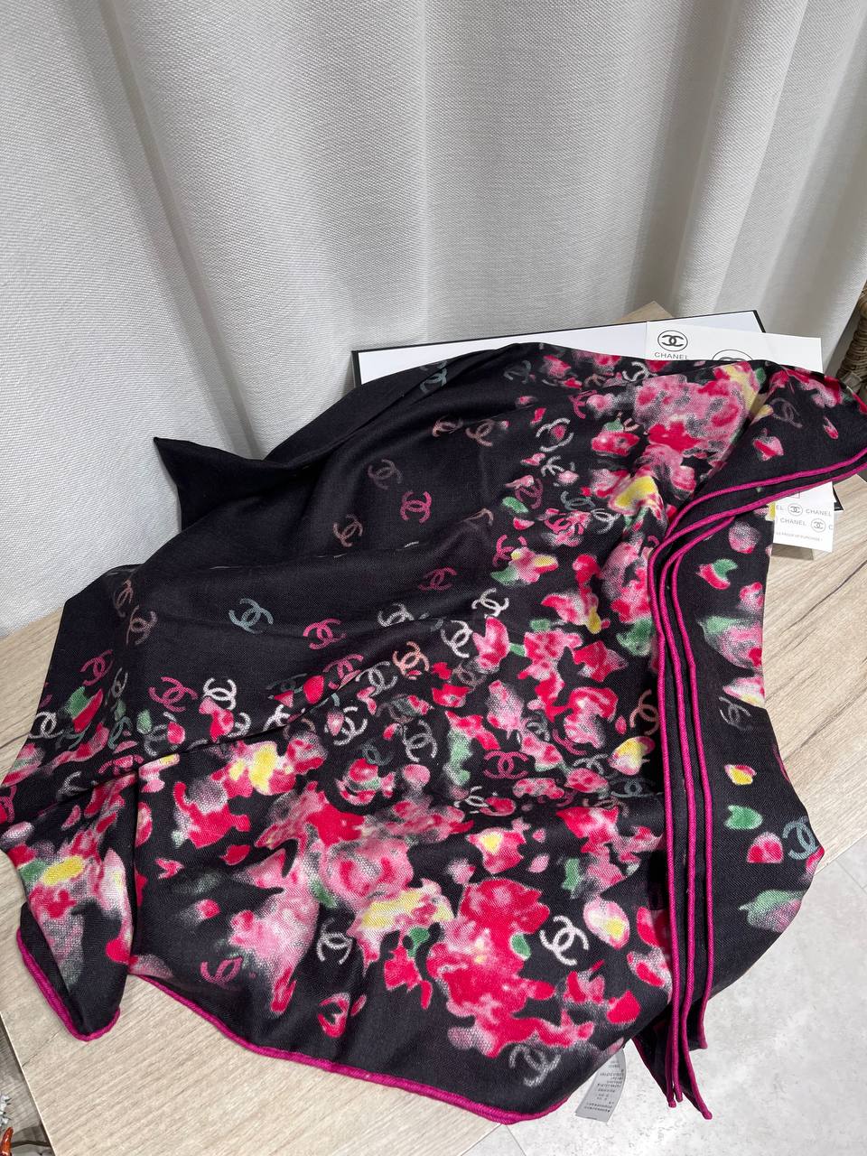 Этот изысканный платок Chanel добавит элегантности и женственности любому образу. Аксессуар выполнен в ярком и запоминающемся дизайне.