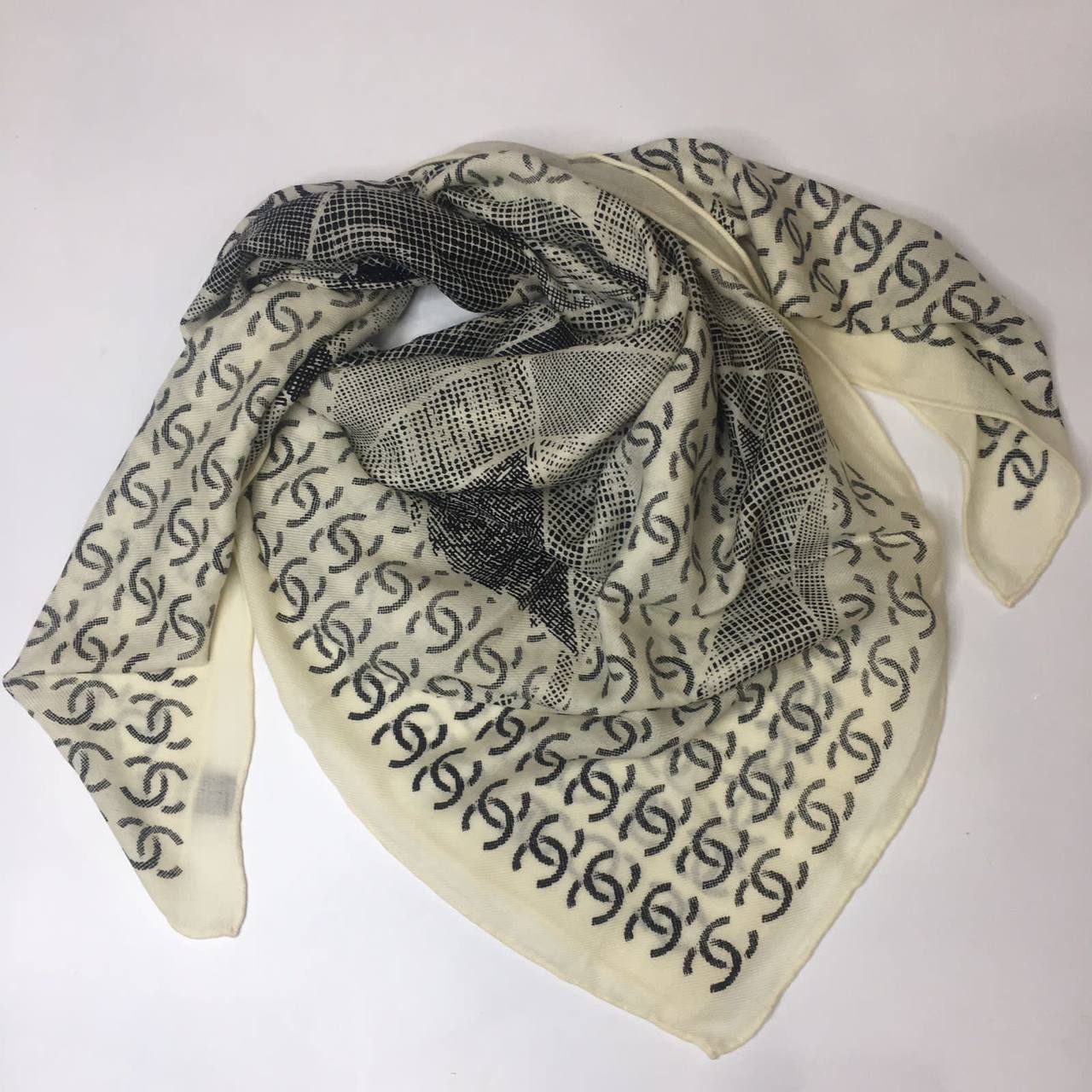 Шелковый платок Chanel LUX-56019 — это роскошный аксессуар, который добавит элегантности любому образу. Платок украшен узнаваемым логотипом бренда в монохромной гамме, создавая изысканный и стильный дизайн. Он идеально подходит для дополнения как повседневных, так и вечерних нарядов.