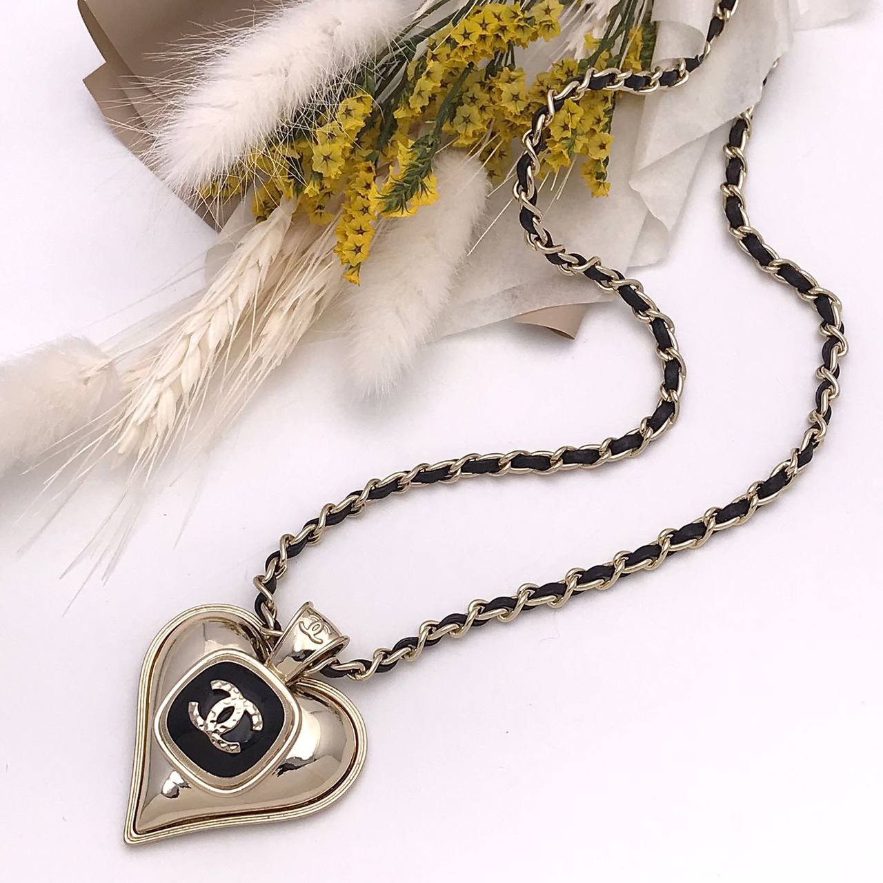 Подвеска Chanel LUX-89021 представляет собой элегантное украшение в виде сердца с логотипом бренда. Она выполнена в золотистом цвете с черными деталями, что придает ей изысканный и роскошный вид. Эта подвеска идеально подходит для создания утонченного образа.
