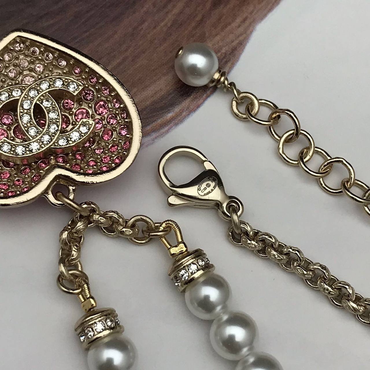 Подвеска Chanel LUX-92247 — это изысканное украшение, сочетающее в себе элегантность и утонченность. Подвеска выполнена в виде сердца, инкрустированного сверкающими элементами, и дополнена изящной цепочкой. Этот аксессуар станет прекрасным дополнением к любому образу.