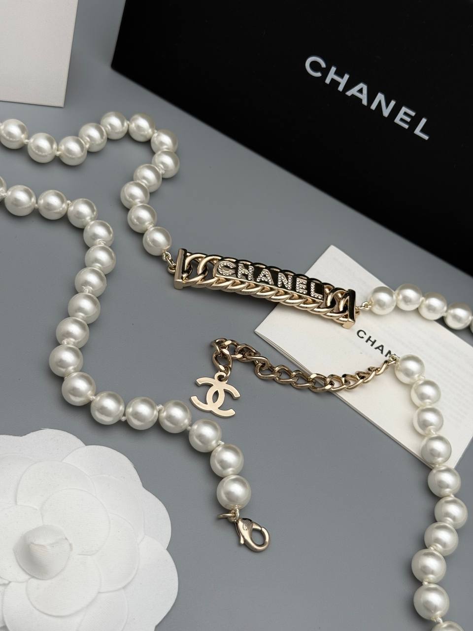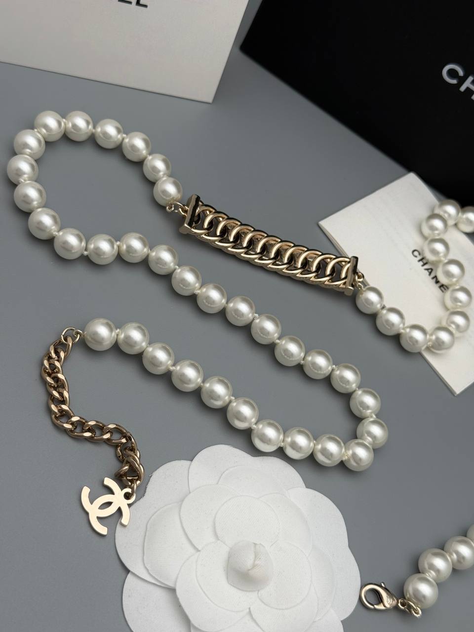 Пояс Chanel LUX-125272 — это элегантный аксессуар, который добавит изысканности любому образу. Он выполнен в классическом стиле, сочетающем в себе жемчуг и металлические элементы.