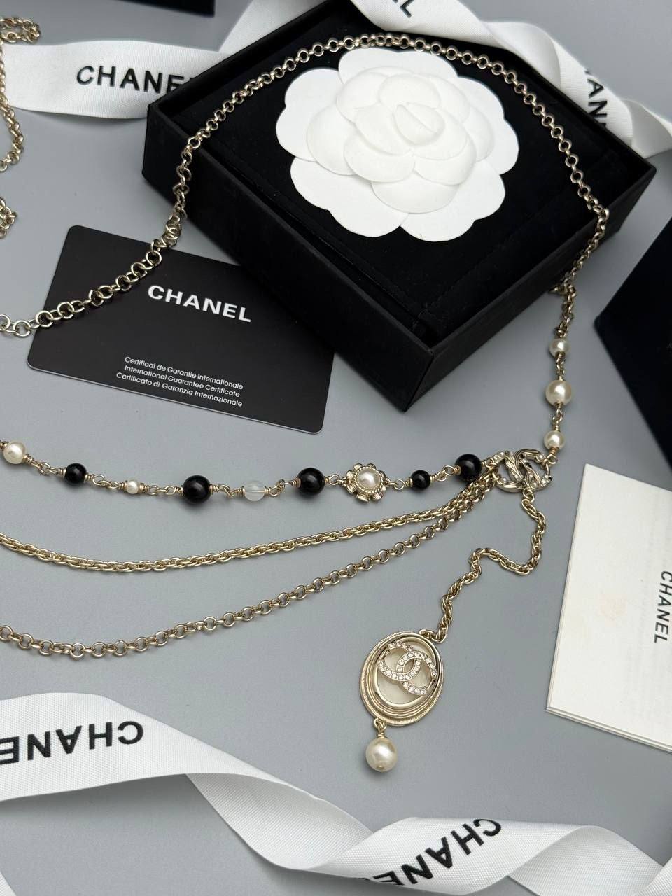 Пояс Chanel LUX-127580 – это изысканный аксессуар, который подчеркнет ваш стиль и добавит элегантности любому образу. Золотистый пояс с жемчугом и черными бусинами станет ярким акцентом в вашем гардеробе.
