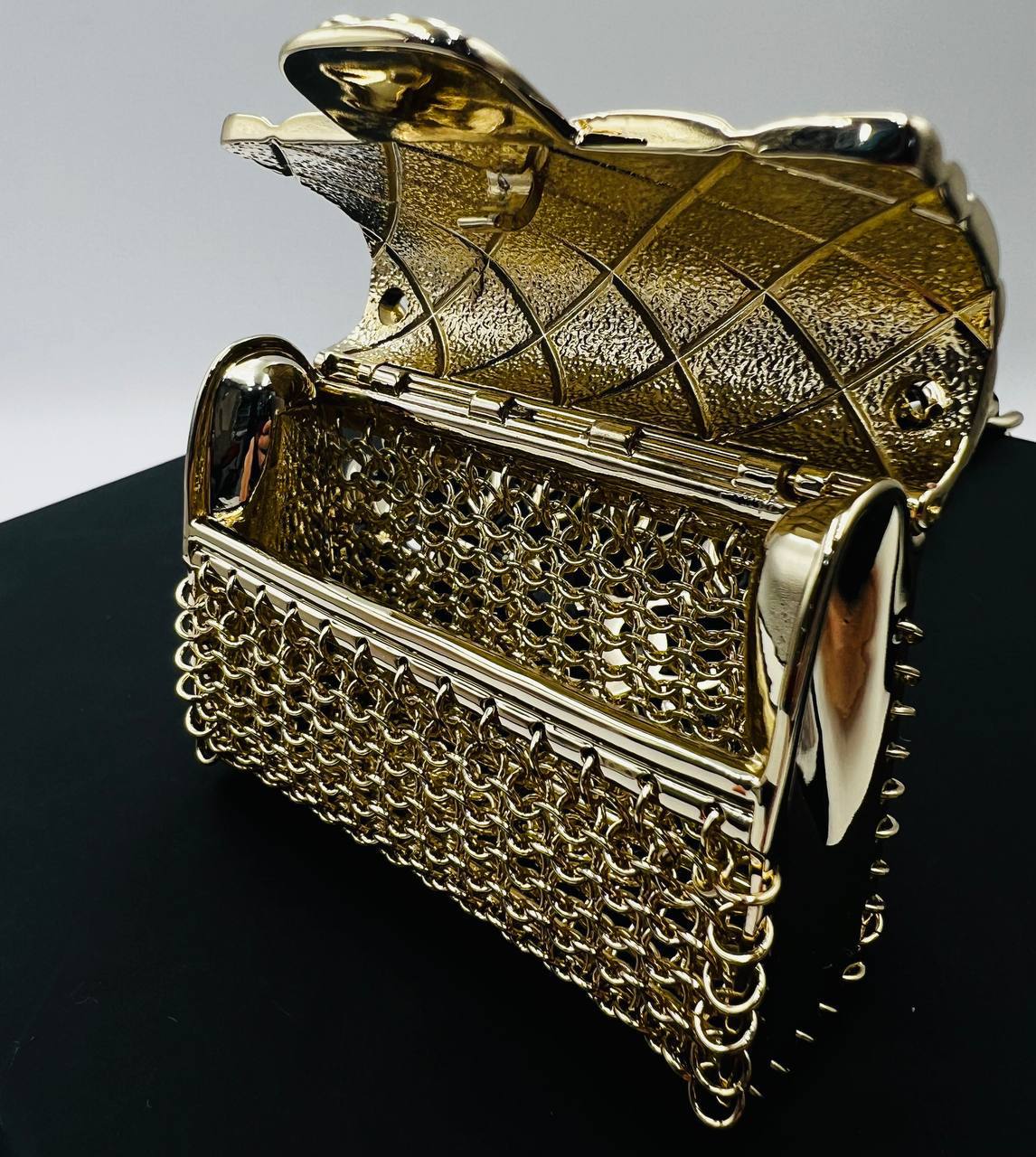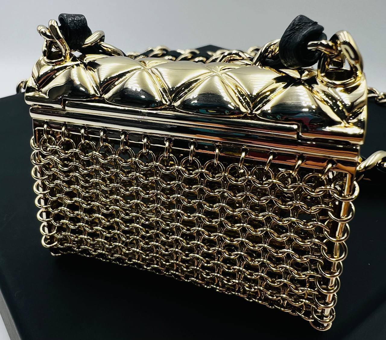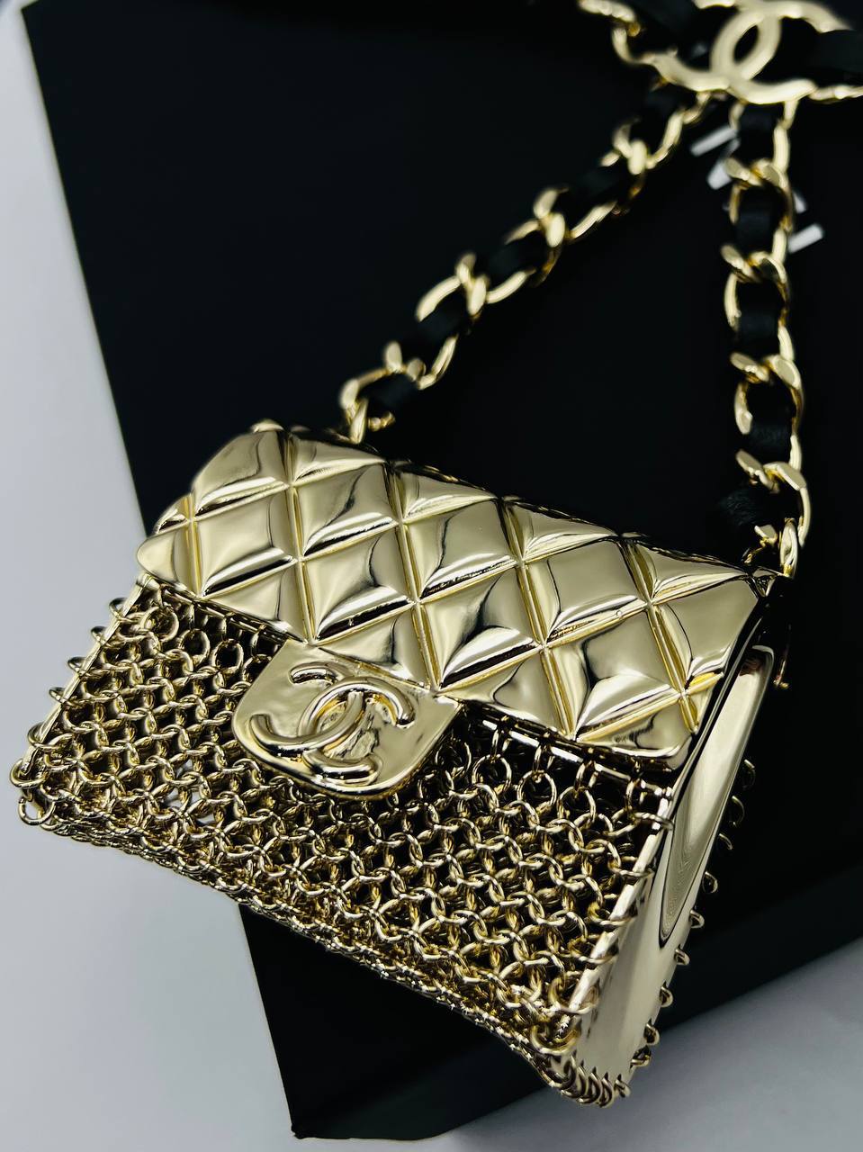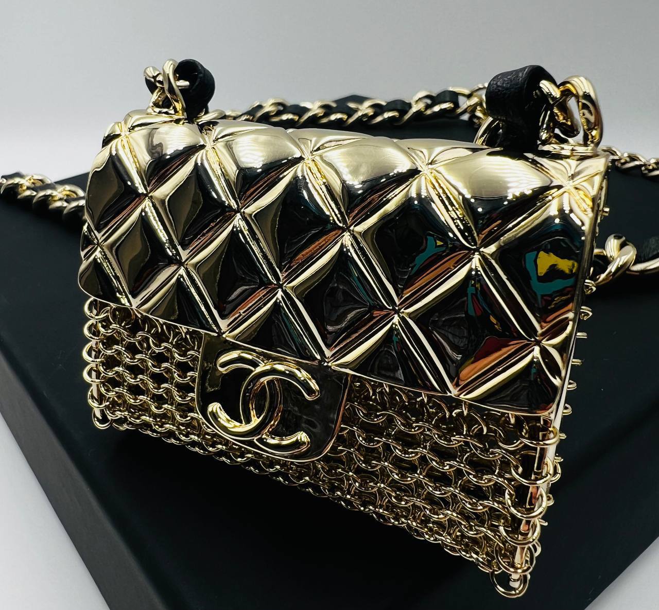 Пояс-сумка Chanel LUX-104328 представляет собой стильный аксессуар от известного бренда. Она выполнена в золотистом цвете с характерным для бренда узором. Эта сумка-пояс добавит роскоши и элегантности любому образу.