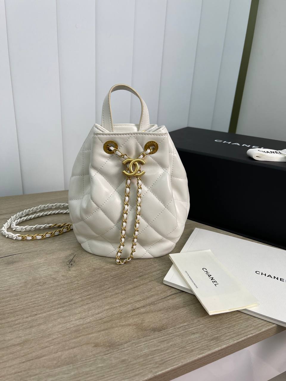 Рюкзак Chanel LUX-72064 — это элегантный аксессуар в стиле casual. Белый стеганый рюкзак с цепочкой-лямкой и золотистой фурнитурой. Идеально подходит для повседневного использования, дополняя любой образ.