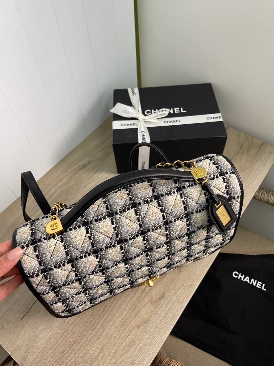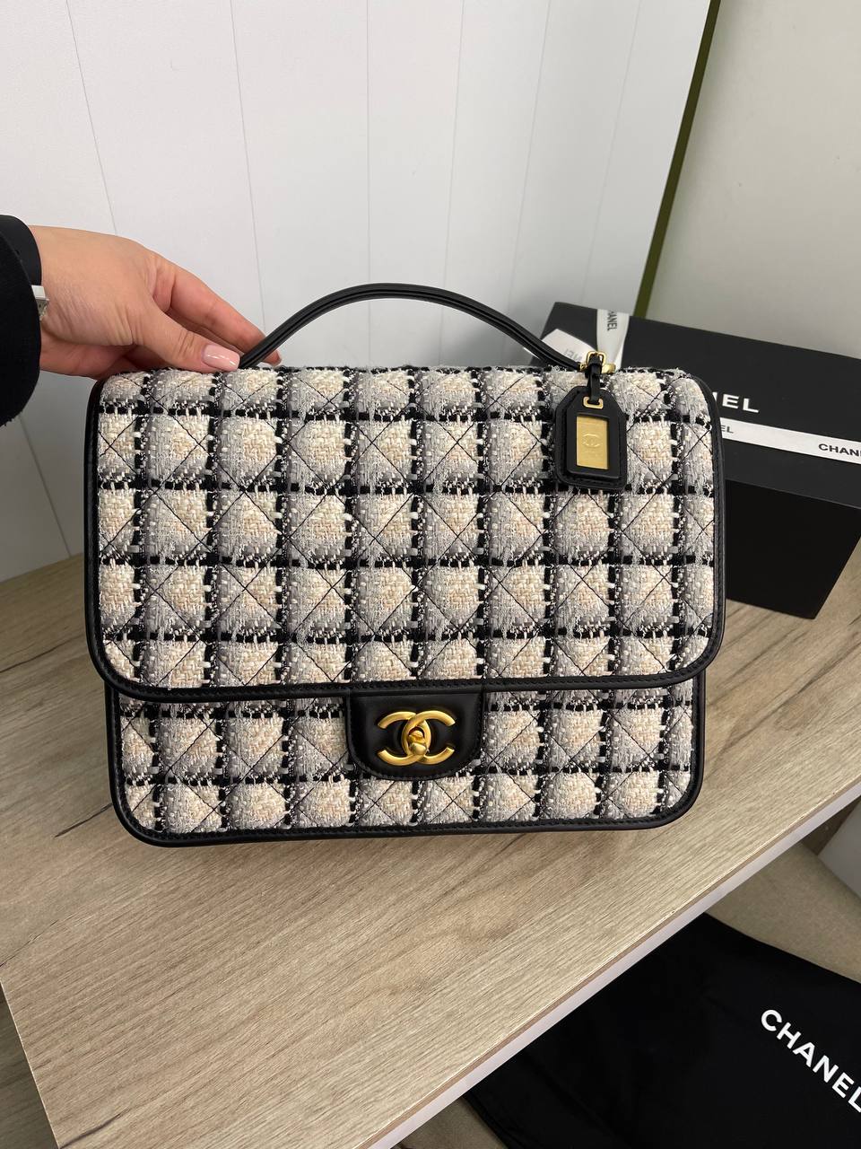 Рюкзак Chanel LUX-83076 - это воплощение элегантности и стиля. Дизайн этой сумки выполнен в классическом стиле Chanel, сочетая в себе утонченность и практичность. Она выполнена в черно-белой гамме с текстурным узором, что делает ее универсальным аксессуаром для различных образов.