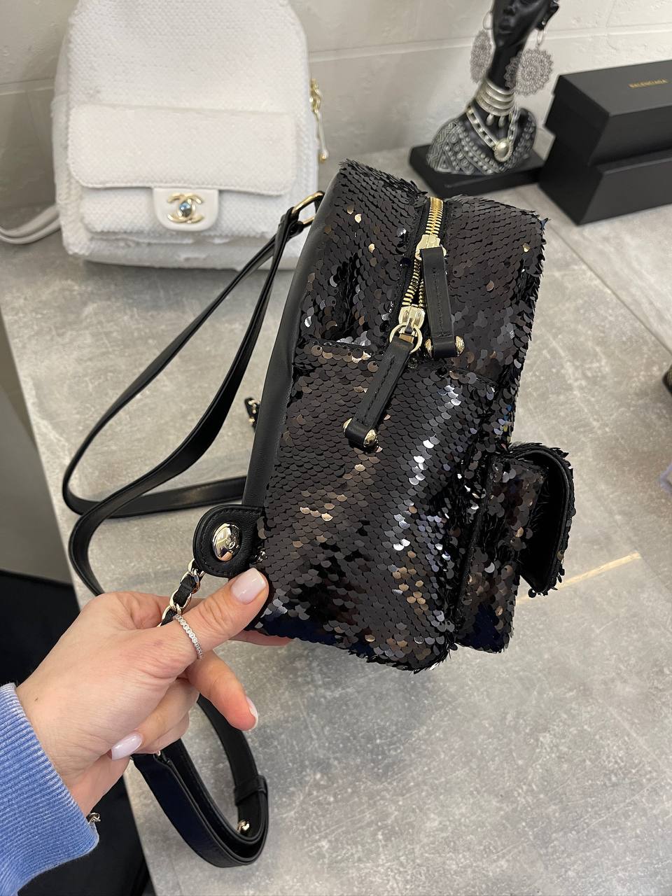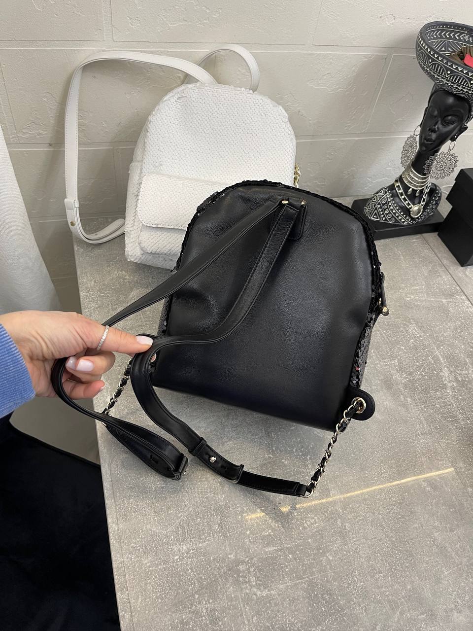 Рюкзак Chanel LUX-102004 — это элегантный аксессуар для стильных образов. Чёрный рюкзак, декорированный пайетками, выглядит роскошно и привлекает внимание. Он станет ярким акцентом в вашем гардеробе, подчеркивая индивидуальность и хороший вкус.