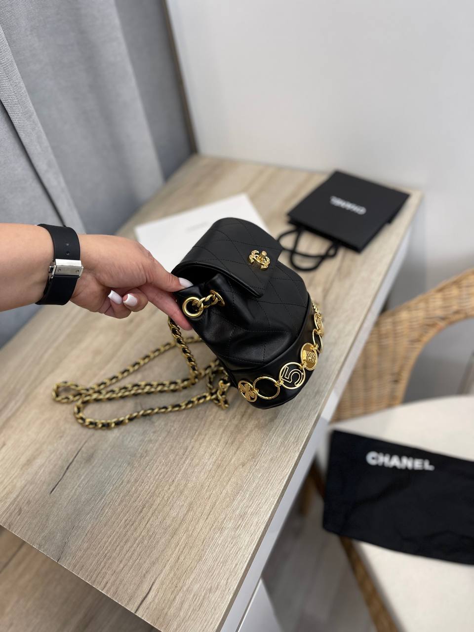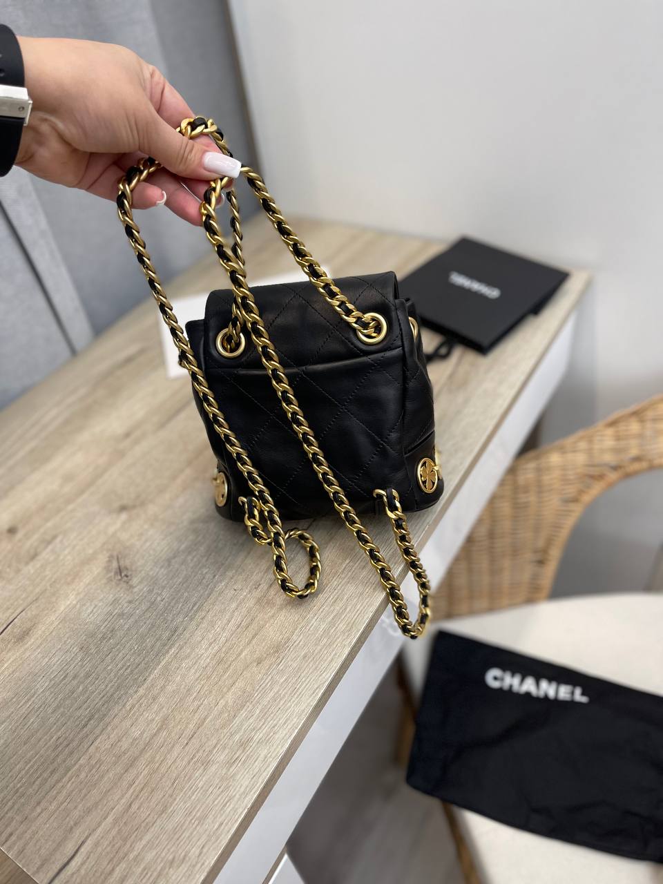 Рюкзак женский Chanel LUX-94682 - это стильный аксессуар, который сочетает в себе элегантность и практичность. Рюкзак выполнен в классическом черном цвете с золотистой фурнитурой. Он идеально подойдет для создания как повседневных, так и более формальных образов.