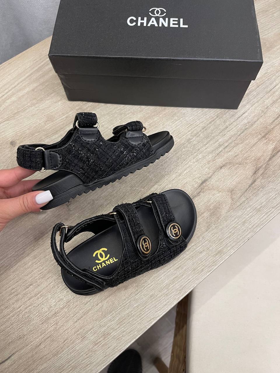 Сандалии Chanel LUX-106719 представляют собой летнюю обувь в черном цвете. Модель выполнена в классическом стиле, с элементами декора в виде фирменных логотипов. Сандалии подойдут для повседневной носки в теплое время года, дополняя различные образы.