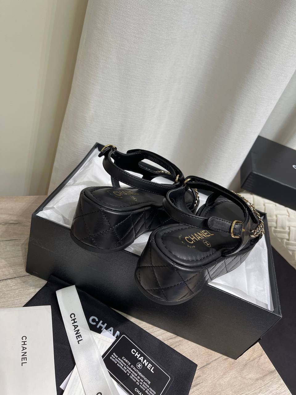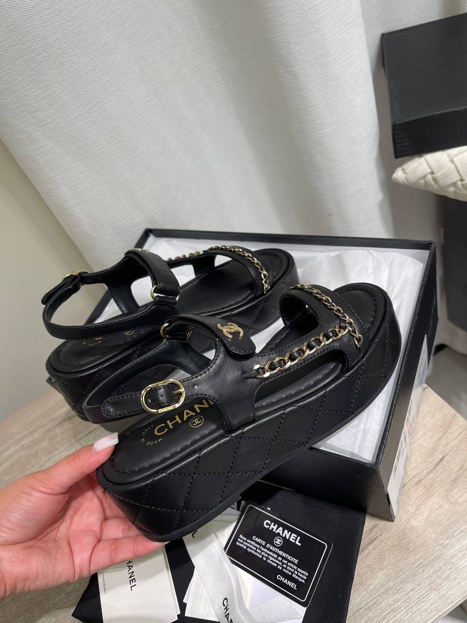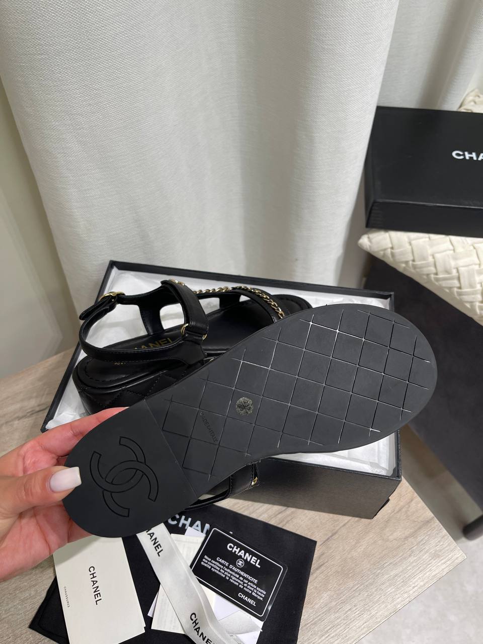 Сандалии Chanel LUX-119652 представляют собой стильные женские сандалии от известного бренда. Модель выполнена в черном цвете с использованием стеганой текстуры, что придает обуви элегантный вид. Эти сандалии идеально подойдут для повседневной носки, а также для создания модных образов.