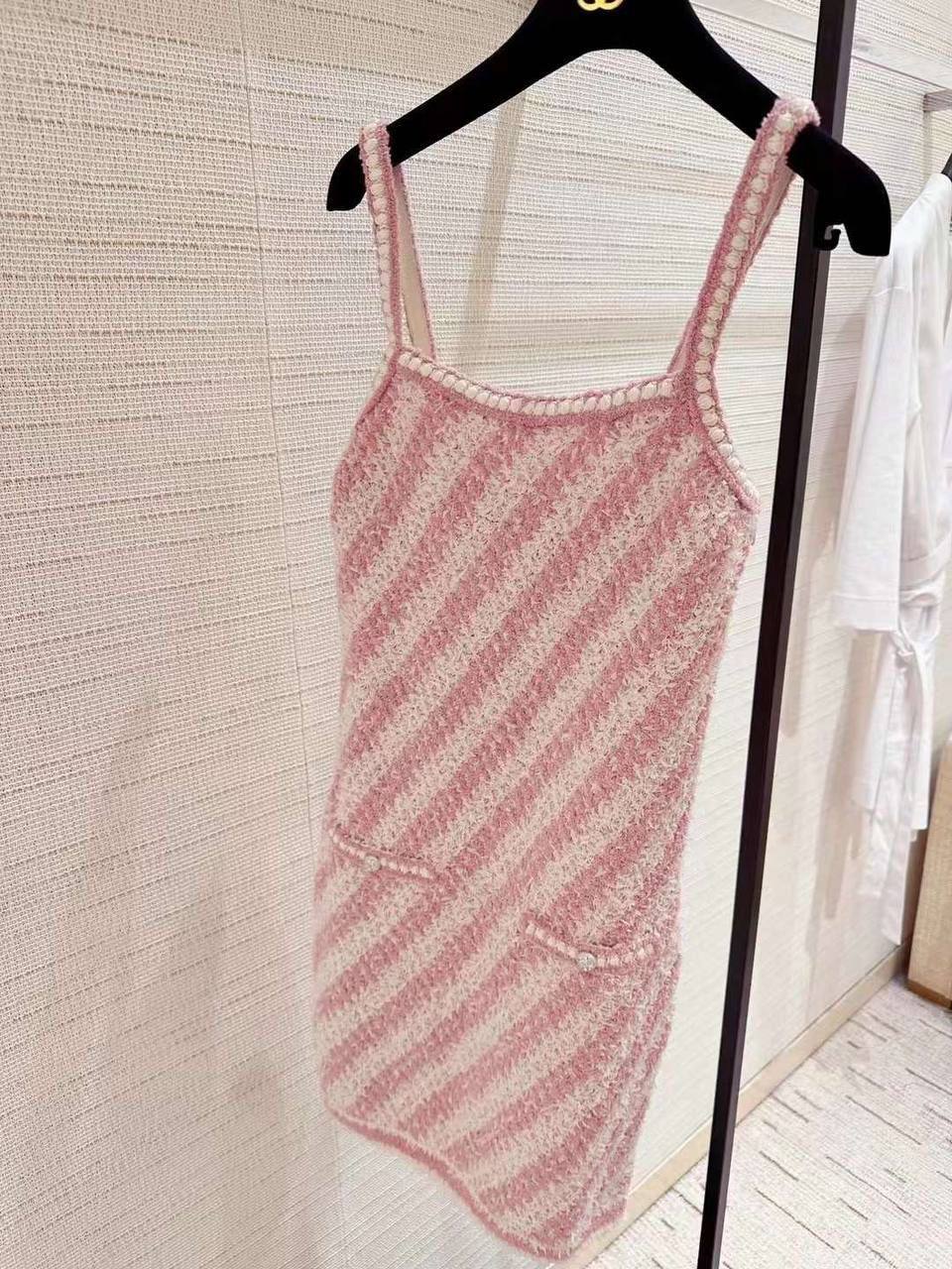 Сарафан Chanel LUX-91475 — это воплощение изысканности и стиля. Сарафан выполнен в розово-белой полосатой текстуре. Этот сарафан идеален для создания элегантного и неповторимого образа.