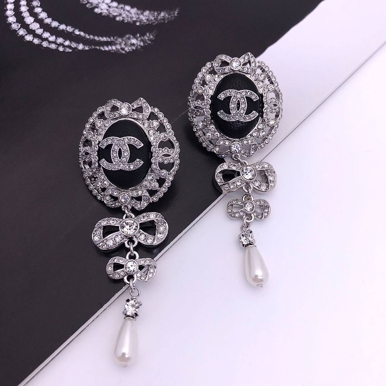 Серьги Chanel LUX-77175 представляют собой изысканное украшение в стиле французской классики. Эти серьги сочетают в себе элегантность и роскошь, идеально подходя для создания эффектного образа. В основе дизайна лежит сочетание серебристого металла, чёрной основы и сияющих кристаллов, придающих им неповторимый шарм.