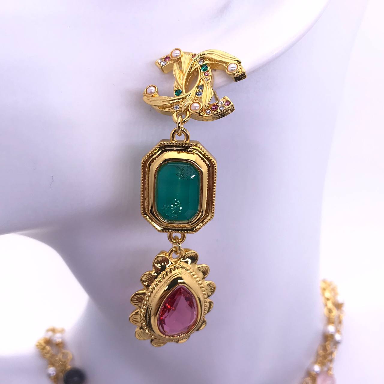 Серьги Chanel LUX-83260 - это элегантное украшение от известного бренда. Серьги выполнены в классическом стиле, сочетая золотистый металл с разноцветными кристаллами. Они идеально подойдут для вечернего выхода или для добавления изысканности в повседневный образ.