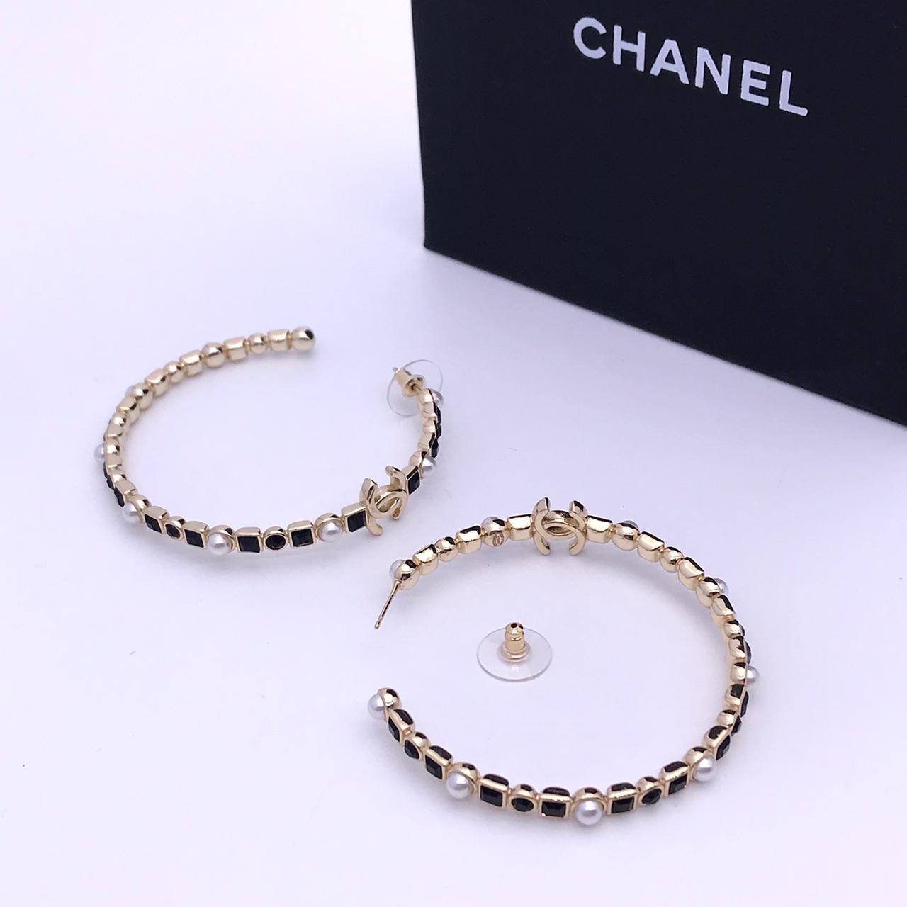 Серьги Chanel LUX-77553 представляют собой изысканное украшение, выполненное в классическом стиле. Сережки-кольца золотистого цвета инкрустированы черными элементами и жемчужинами. Оригинальный дизайн делает серьги подходящими как для повседневного ношения, так и для особых случаев.