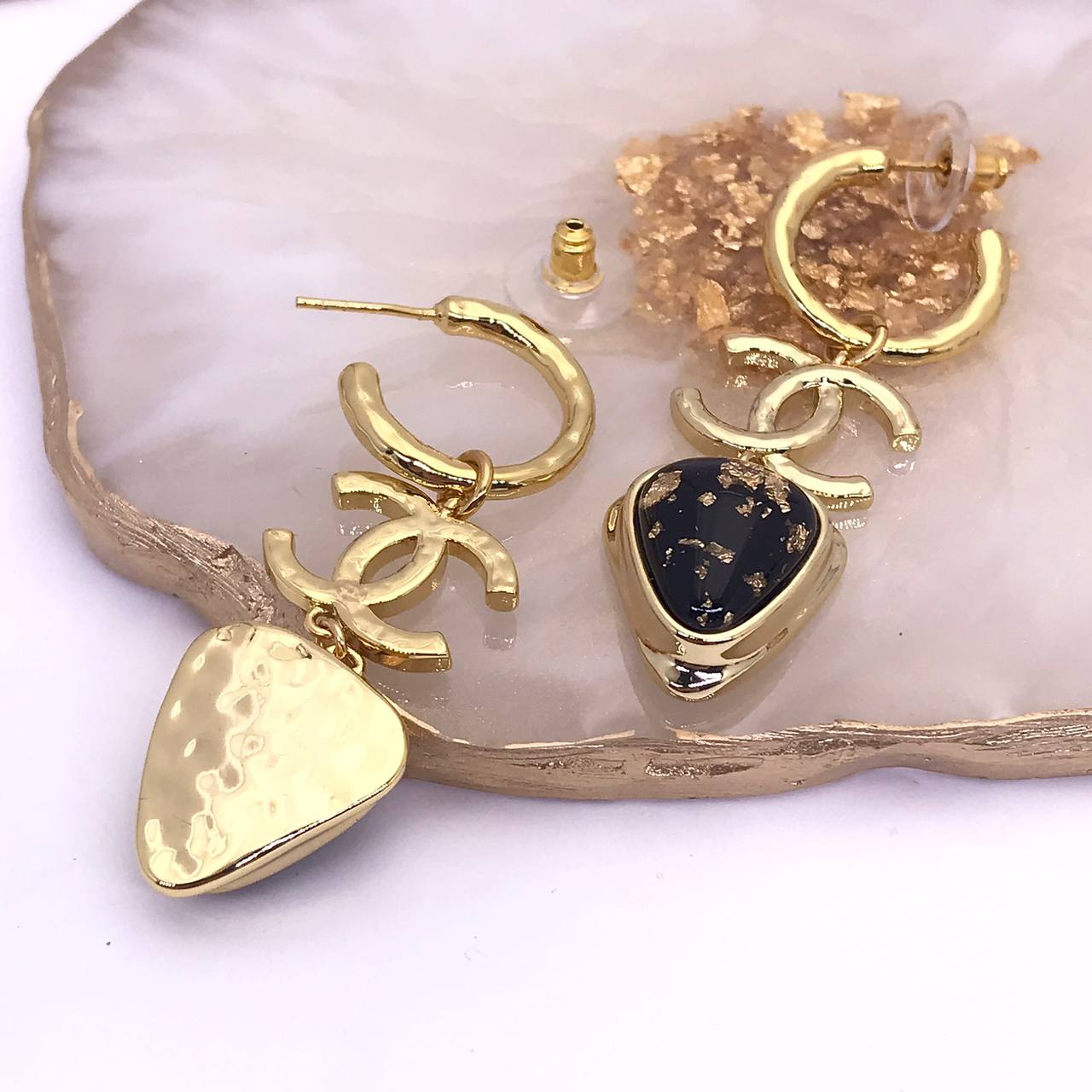 Серьги Chanel LUX-83305 – это элегантное украшение, которое подчеркнет ваш стиль. Серьги выполнены в форме колец с подвесками в виде треугольников, украшенных черным камнем с золотыми вкраплениями. Они идеально подойдут для создания как повседневного, так и вечернего образа.
