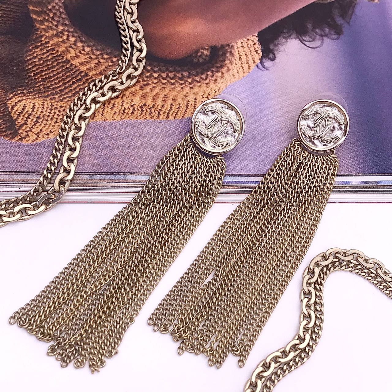Серьги Chanel LUX-83482 представляют собой изысканное украшение, сочетающее в себе элегантность и утонченность. Эти серьги-кисточки выполнены в золотистом оттенке, придавая им роскошный вид. Их дизайн подчеркивает классический стиль бренда, что делает их идеальным дополнением к любому образу.