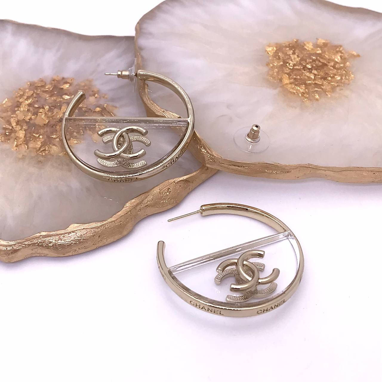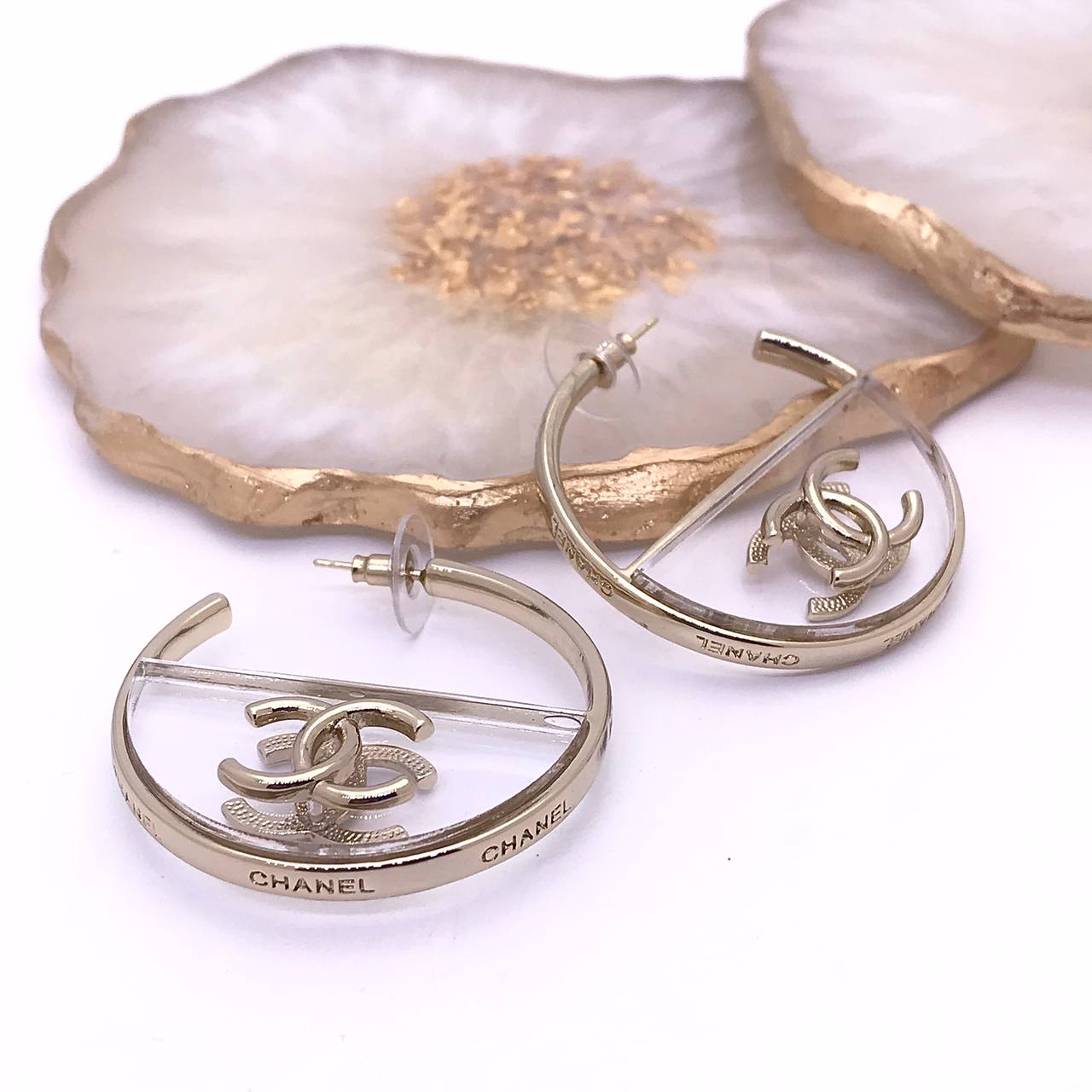 Серьги Chanel LUX-83489 — это стильный аксессуар, который подчеркнет ваш образ. Эти серьги-кольца выполнены в современном дизайне, сочетающем в себе элегантность и изысканность. Золотистый оттенок и прозрачные элементы создают неповторимый вид, делая их идеальным дополнением к любому наряду.