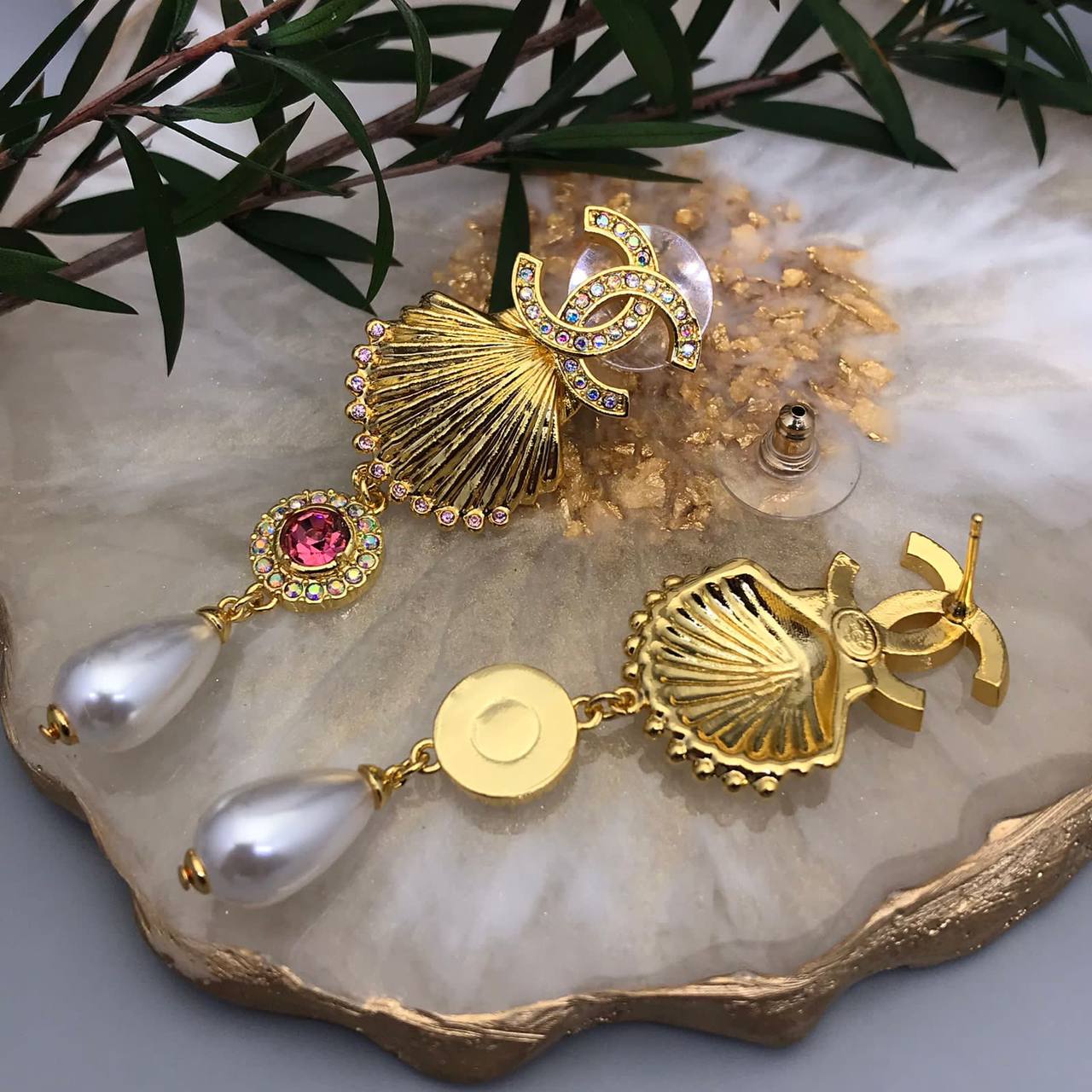 Серьги Chanel LUX-88581 – это изысканное ювелирное украшение, сочетающее в себе элегантность и роскошь. Серьги выполнены в форме ракушек золотистого цвета, украшенных кристаллами и жемчужными подвесками, придающими им утонченный вид. Эти серьги станут прекрасным дополнением к любому образу, подчеркивая индивидуальность и изысканный вкус.
