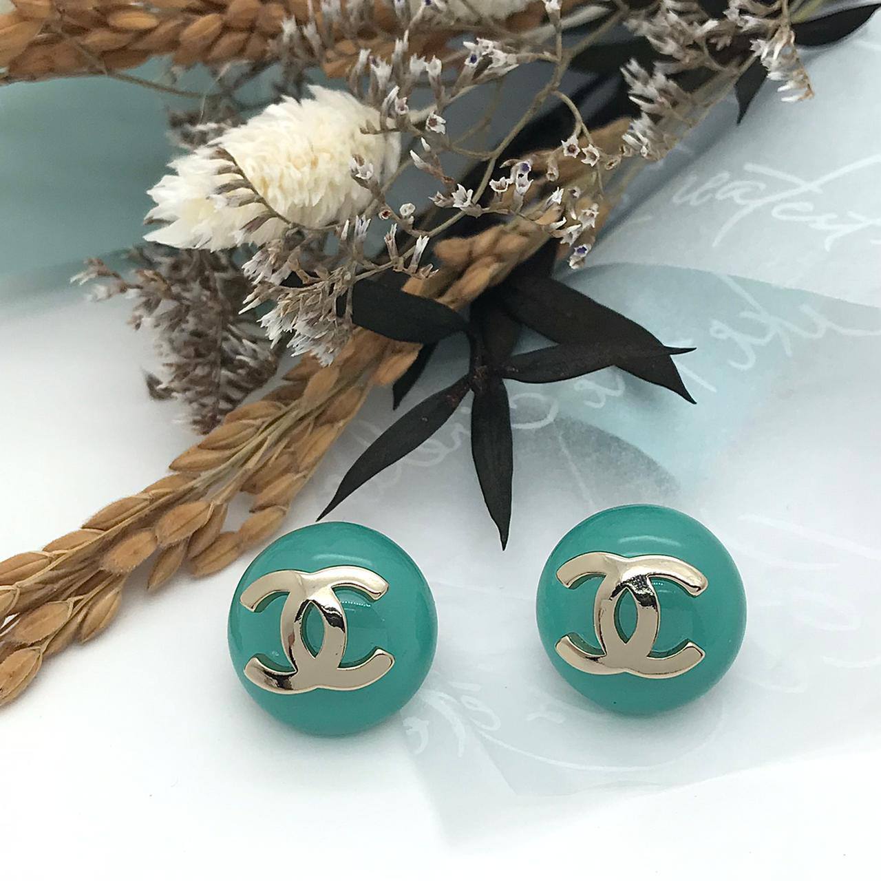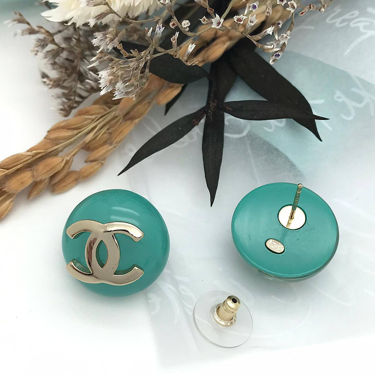 Серьги Chanel LUX-89503 – это элегантное украшение, которое подчеркнет ваш стиль. Серьги круглой формы бирюзового цвета с золотистым логотипом бренда. Идеально подойдут для повседневной носки и для особых случаев.