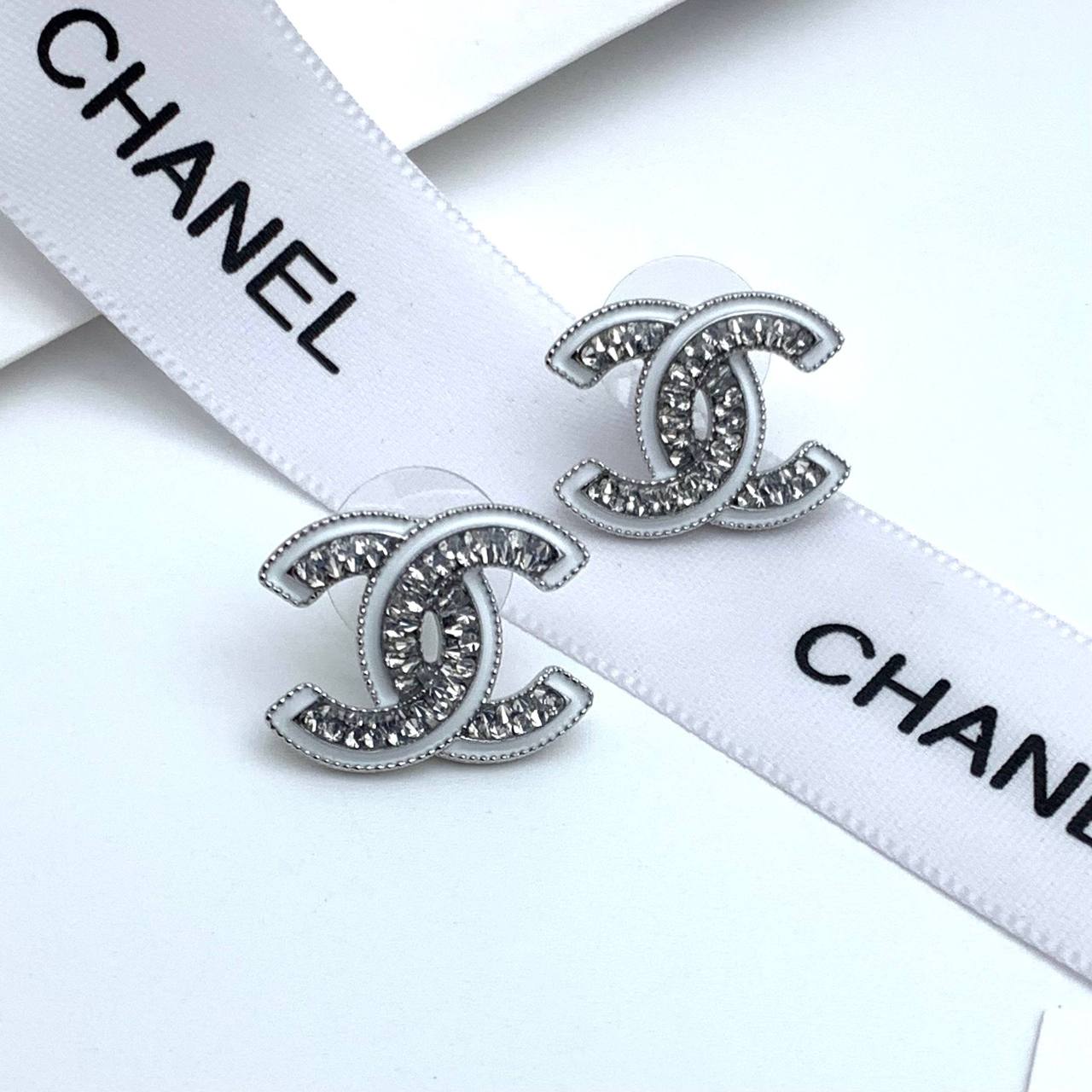 Элегантные серьги Chanel в стиле минимализм. Дизайн выполнен в виде логотипа бренда, украшенного сверкающими кристаллами. Идеальный аксессуар для дополнения любого образа.