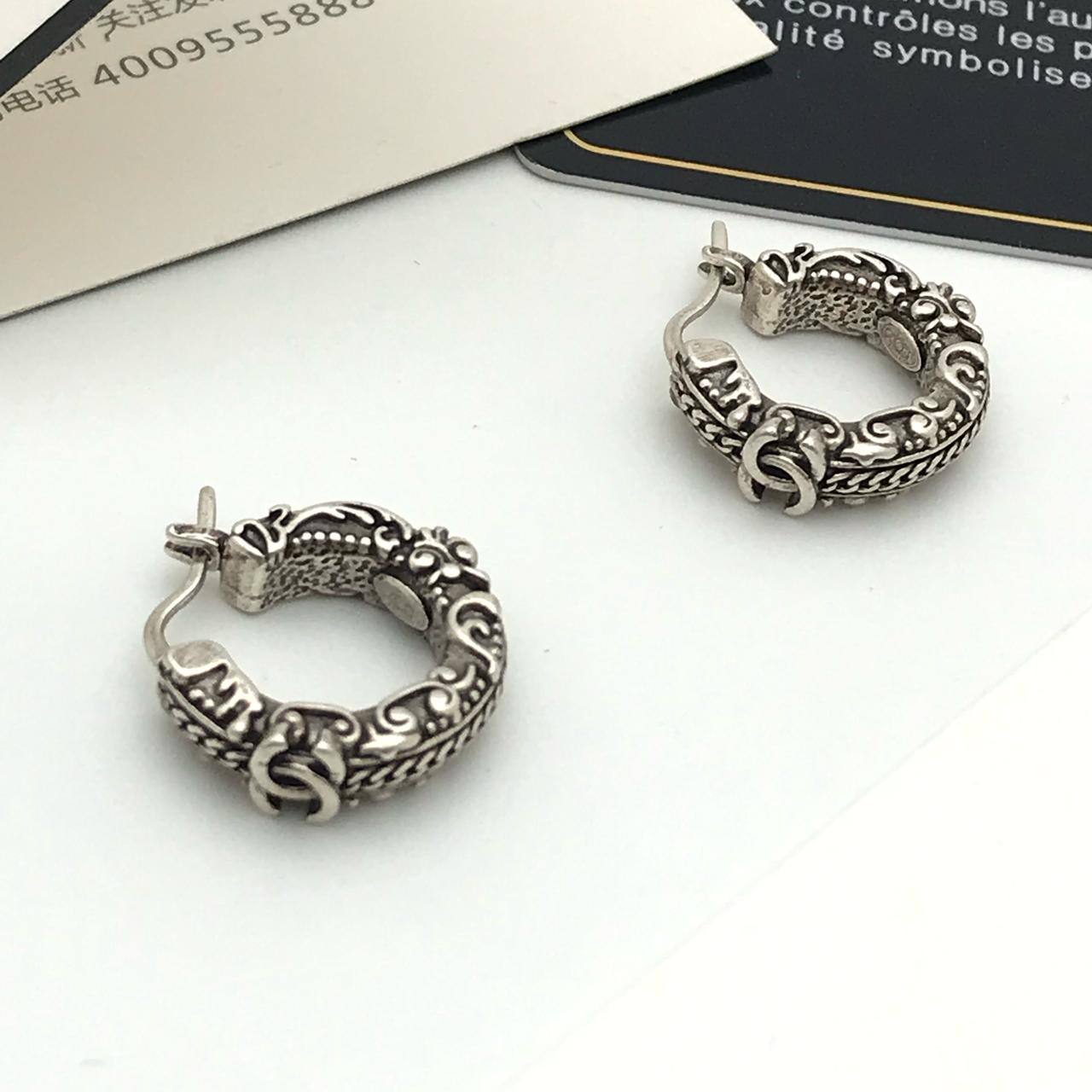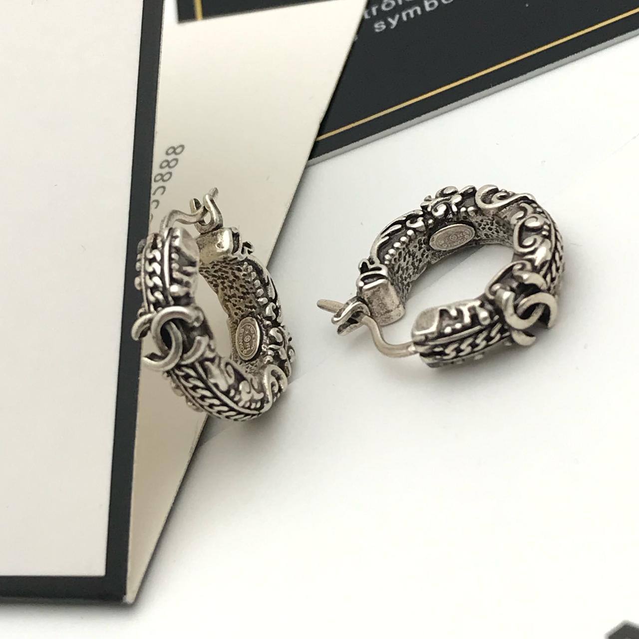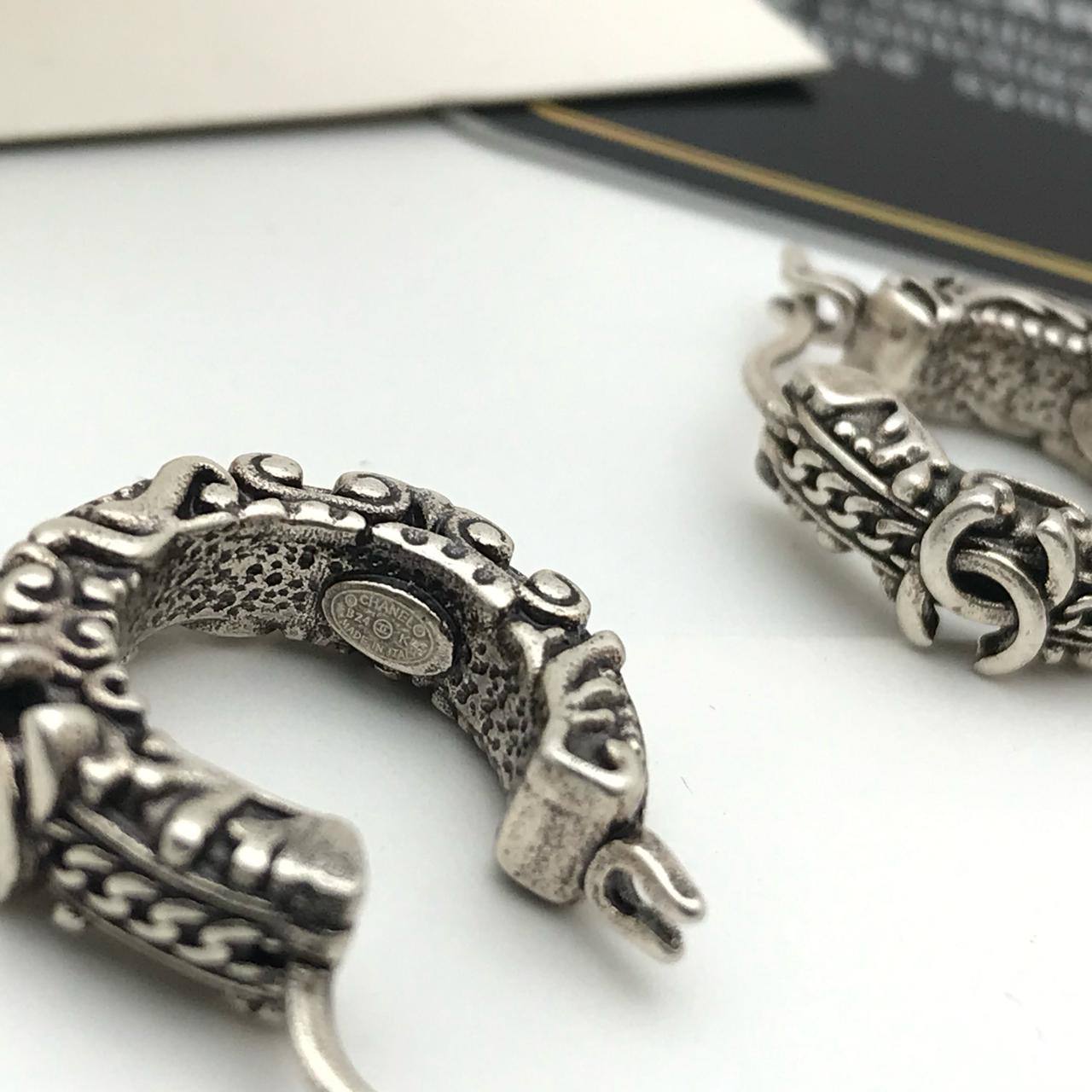 Серьги Chanel LUX-117406 — это изысканное украшение в серебристом цвете, выполненное в классическом стиле. Серьги-кольца с резными деталями и фирменным логотипом бренда, придадут элегантность и подчеркнут ваш безупречный вкус.