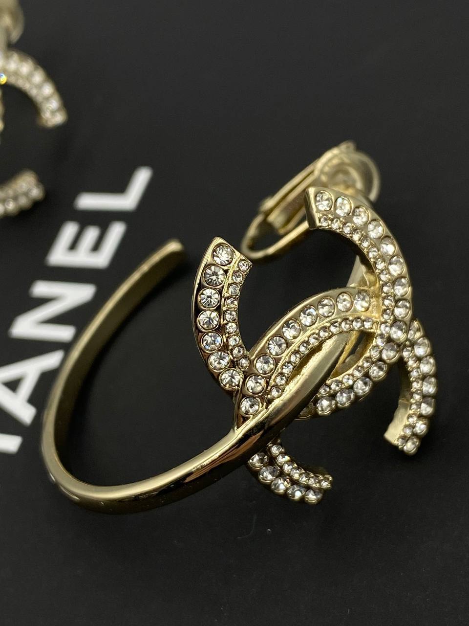 Серьги - клипсы Chanel LUX-99579 выполнены в узнаваемом стиле бренда. Золотистый цвет и блестящая отделка камнями делают эти клипсы идеальным аксессуаром для создания роскошного образа. Клипсы-серьги идеально подойдут для вечерних выходов и особых случаев.