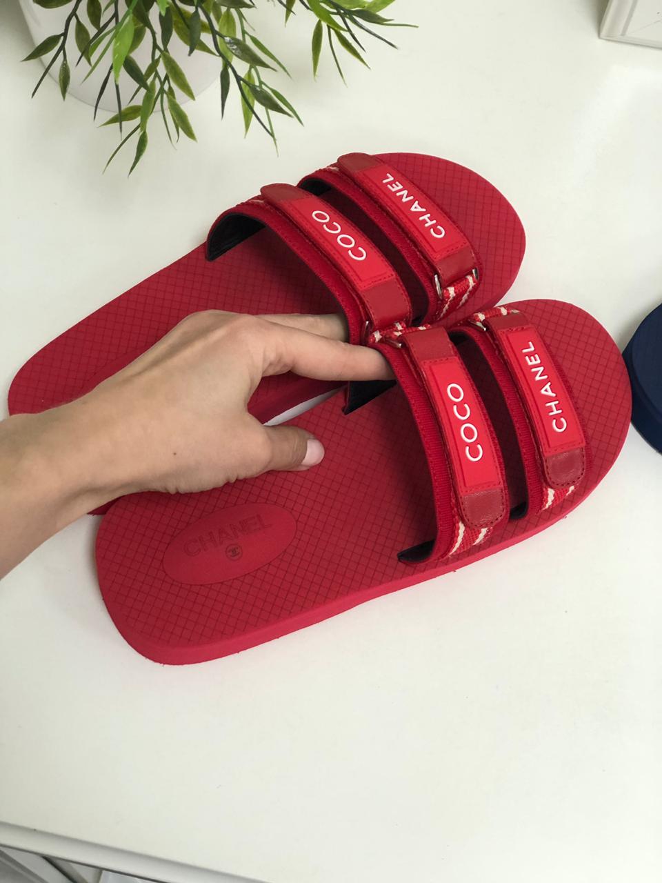 Эти шлёпанцы Chanel LUX-12876 представляют собой яркий и стильный выбор для летнего сезона. Красный цвет придает им эффектный вид, а контрастная белая надпись "COCO CHANEL" на ремешках подчеркивает узнаваемость бренда. Модель выполнена в дизайне, идеально подходящем для пляжного отдыха, прогулок и повседневного ношения в теплую погоду, обеспечивая комфорт и свободу движений.