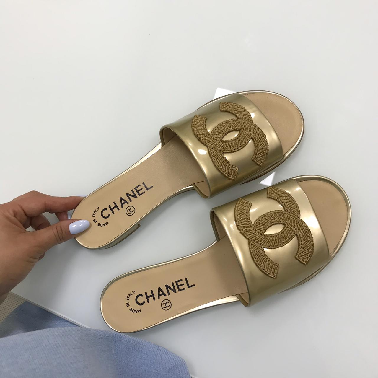 Эти элегантные шлёпанцы Chanel LUX-13300 выполнены в шикарном золотом цвете, что делает их идеальным выбором для дополнения летних образов. Модель украшена узнаваемым логотипом бренда, выполненным объемной вышивкой, и акцентирует внимание на утонченном стиле. Эти шлёпанцы идеально подходят для создания стильных и комфортных луков на каждый день или для особых случаев, подчеркивая изысканность вкуса.