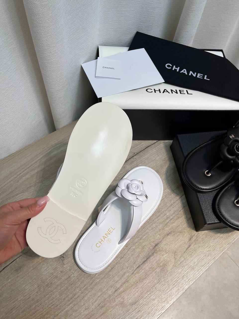 Эти элегантные шлепанцы Chanel – идеальный выбор для летнего отдыха или создания стильного повседневного образа. Они сочетают в себе комфорт и изысканный дизайн, характерный для бренда.