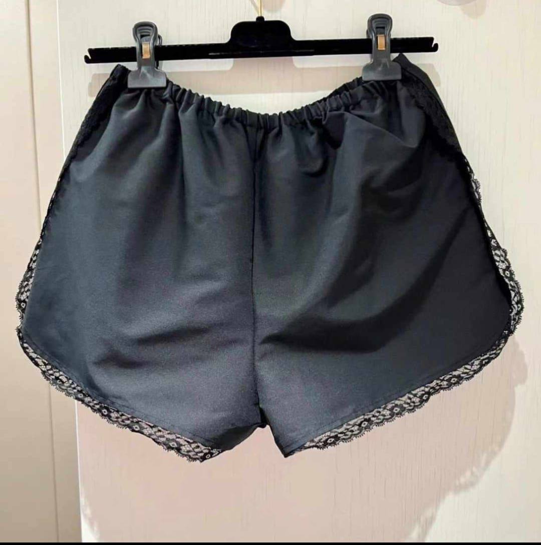 Шорты Chanel LUX-90067 представляют собой элегантный предмет гардероба. Шорты выполнены в классическом стиле, чёрного цвета с кружевной отделкой по краям. Идеально подходят для создания как повседневных, так и более нарядных образов.