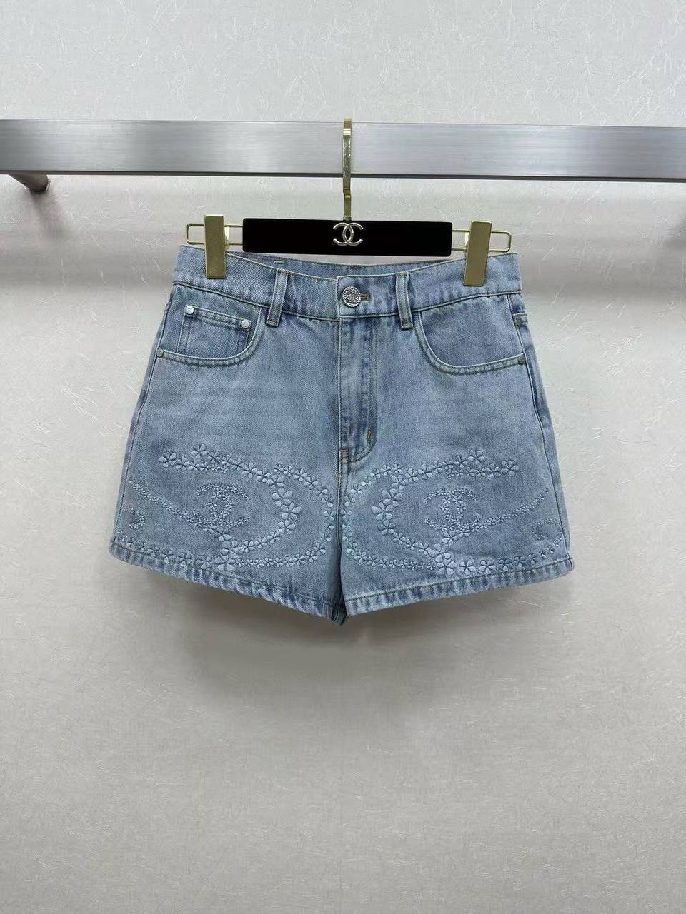 Шорты Chanel LUX-119699 — это воплощение элегантности и стиля от известного бренда. Джинсовые шорты светло-голубого цвета украшены изысканной вышивкой, выполненной в виде логотипа бренда. Отлично подойдут для создания стильных и запоминающихся образов в повседневной жизни.