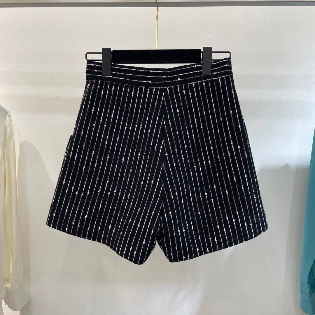 Шорты Chanel LUX-90065 – это стильный предмет гардероба от известного бренда. Шорты выполнены в классическом стиле, чёрного цвета с вертикальными полосами, которые визуально вытягивают силуэт. Идеально подойдут для создания элегантных образов.