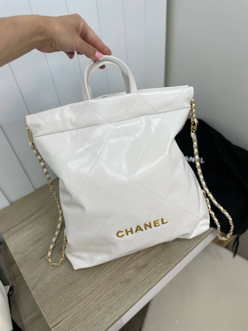Сумка -рюкзак Chanel LUX-69866 выполнена в белом цвете и сочетает в себе стиль сумки и рюкзака. Сдержанный дизайн дополнен золотистой фурнитурой и логотипом бренда. Этот аксессуар станет отличным дополнением к повседневному образу.