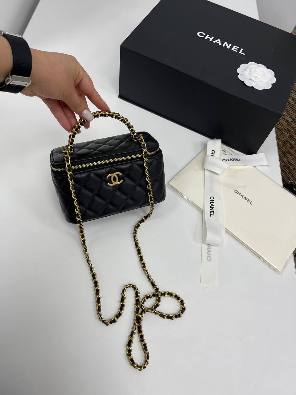 Женская сумка Chanel LUX-87079 — это воплощение элегантности и роскоши. Небольшая стеганая сумка прямоугольной формы выполнена в классическом черном цвете. Дополнена золотистой фурнитурой и цепочкой-ремешком, что придает ей изысканный вид.