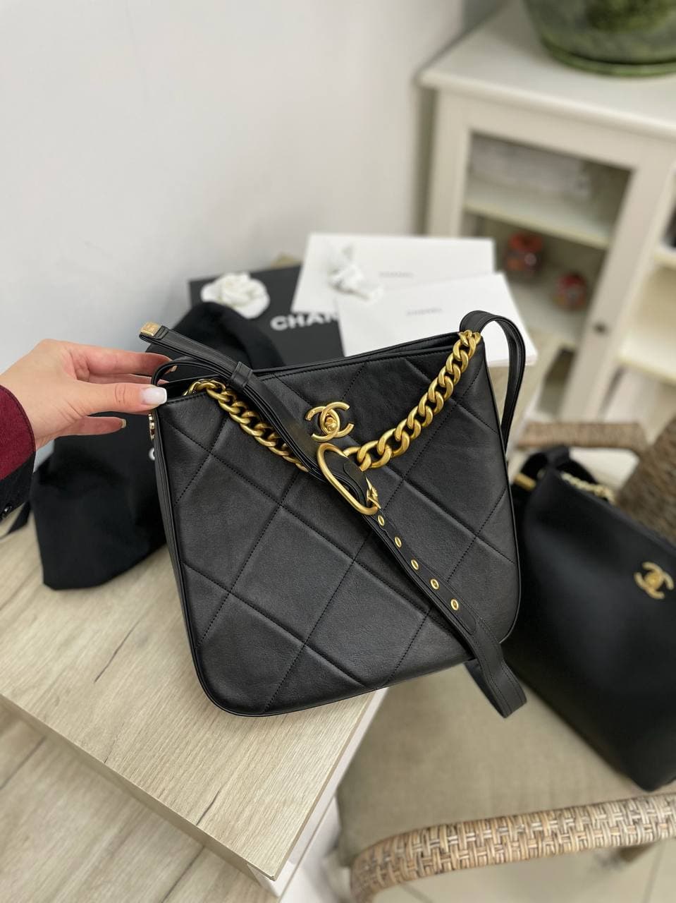 Сумка женская Chanel LUX-59689 представляет собой воплощение элегантности и роскоши. Эта модель, выполненная в классическом черном цвете, идеально дополнит как повседневный, так и вечерний образ. Аккуратная ромбовидная стежка придает ей утонченность, а массивная золотистая цепочка и узнаваемый логотип бренда подчеркивают статус.