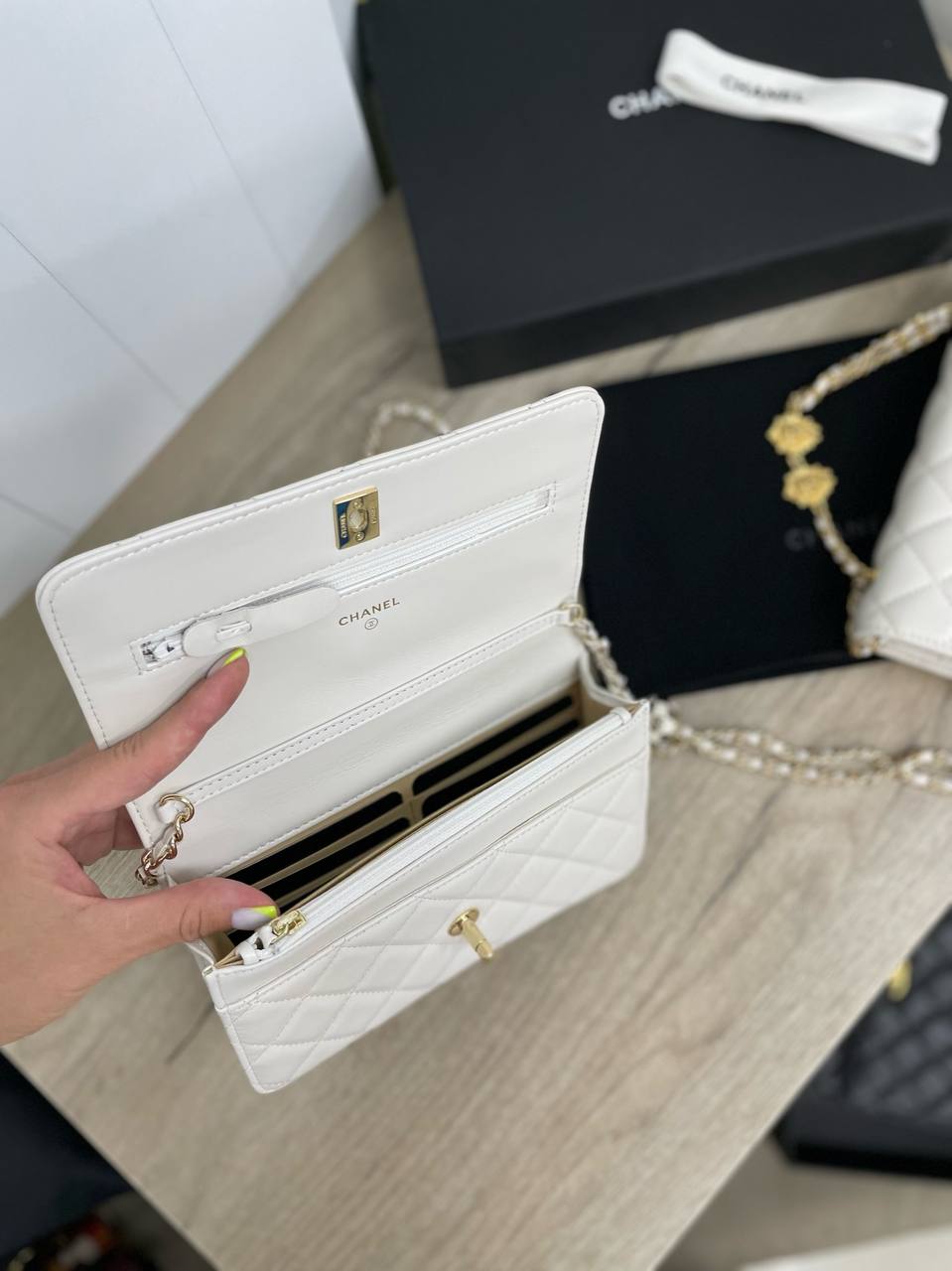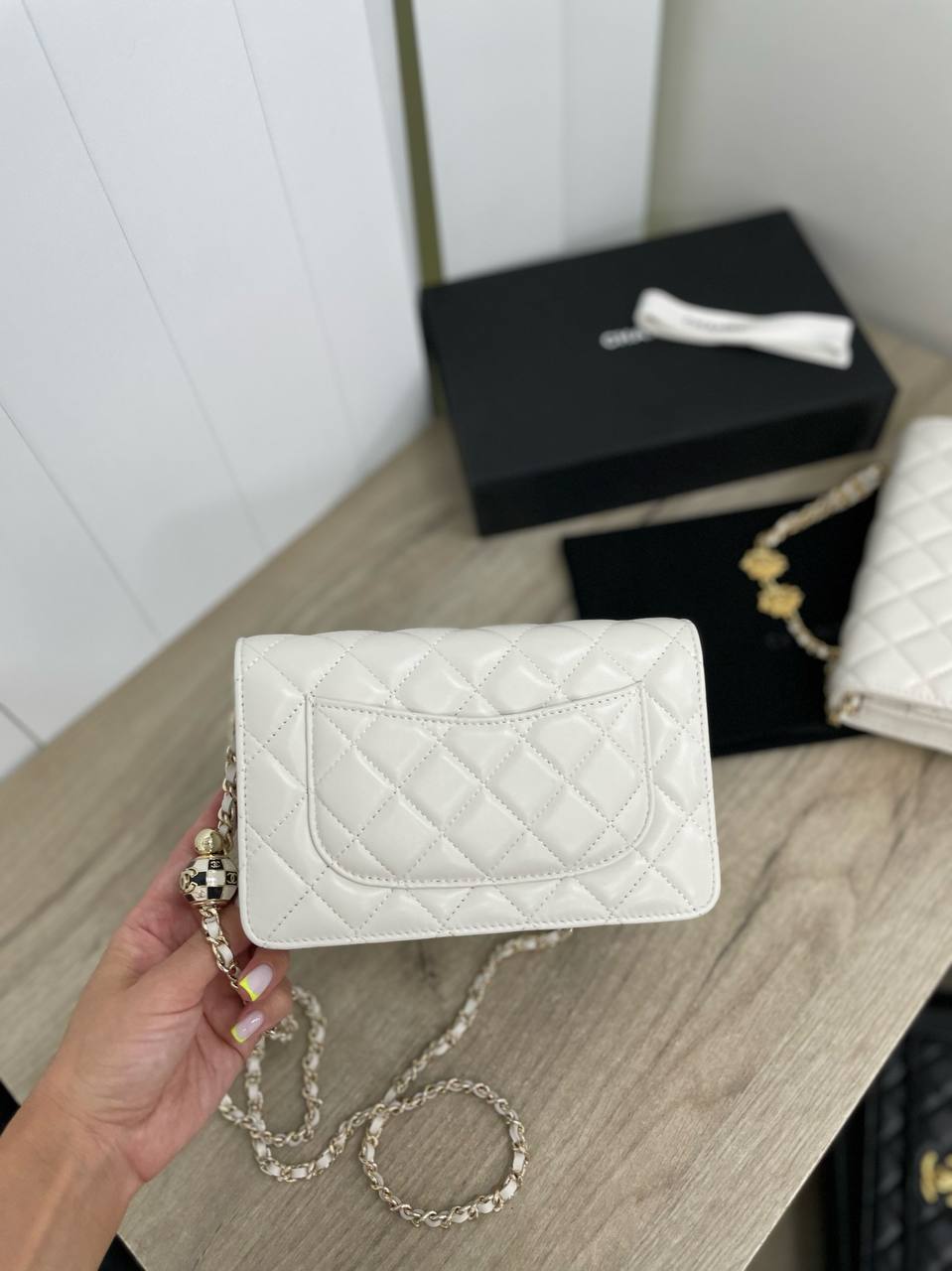 Сумка женская Chanel LUX-93643 - это элегантный аксессуар, выполненный в классическом стиле. Она выполнена в белом цвете с характерной для бренда стежкой, придающей ей изысканный вид. Сумка идеально подходит для повседневной носки, а также для создания более формальных образов.