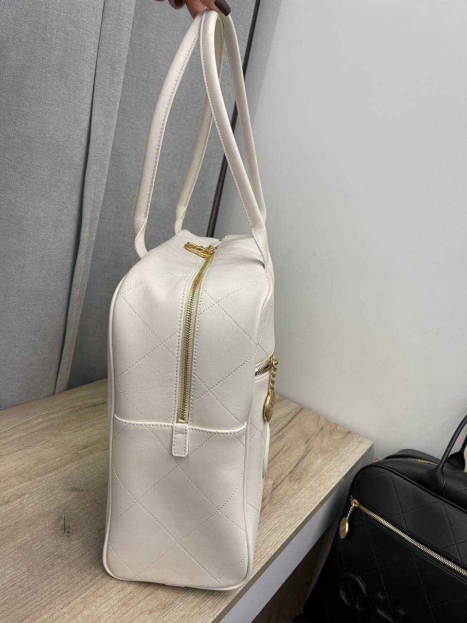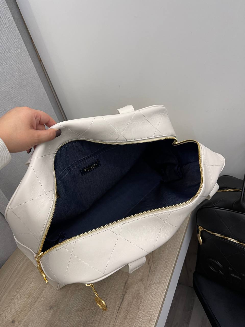 Судя по изображению, это женская сумка Chanel LUX-97067. Белая стеганая сумка в стиле Chanel с надписью бренда на передней панели. Идеально подходит для повседневного использования, подчеркивая элегантность и статус.