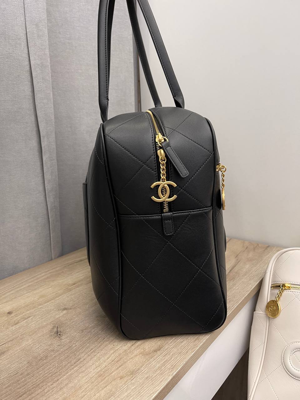 Женская сумка Chanel LUX-97068 — это стильный аксессуар, который подчеркнет элегантность и статус своей обладательницы. Черная сумка выполнена в классическом стиле, с текстурированным ромбовидным узором и надписью бренда. Ее можно использовать как повседневную сумку или для особых случаев.