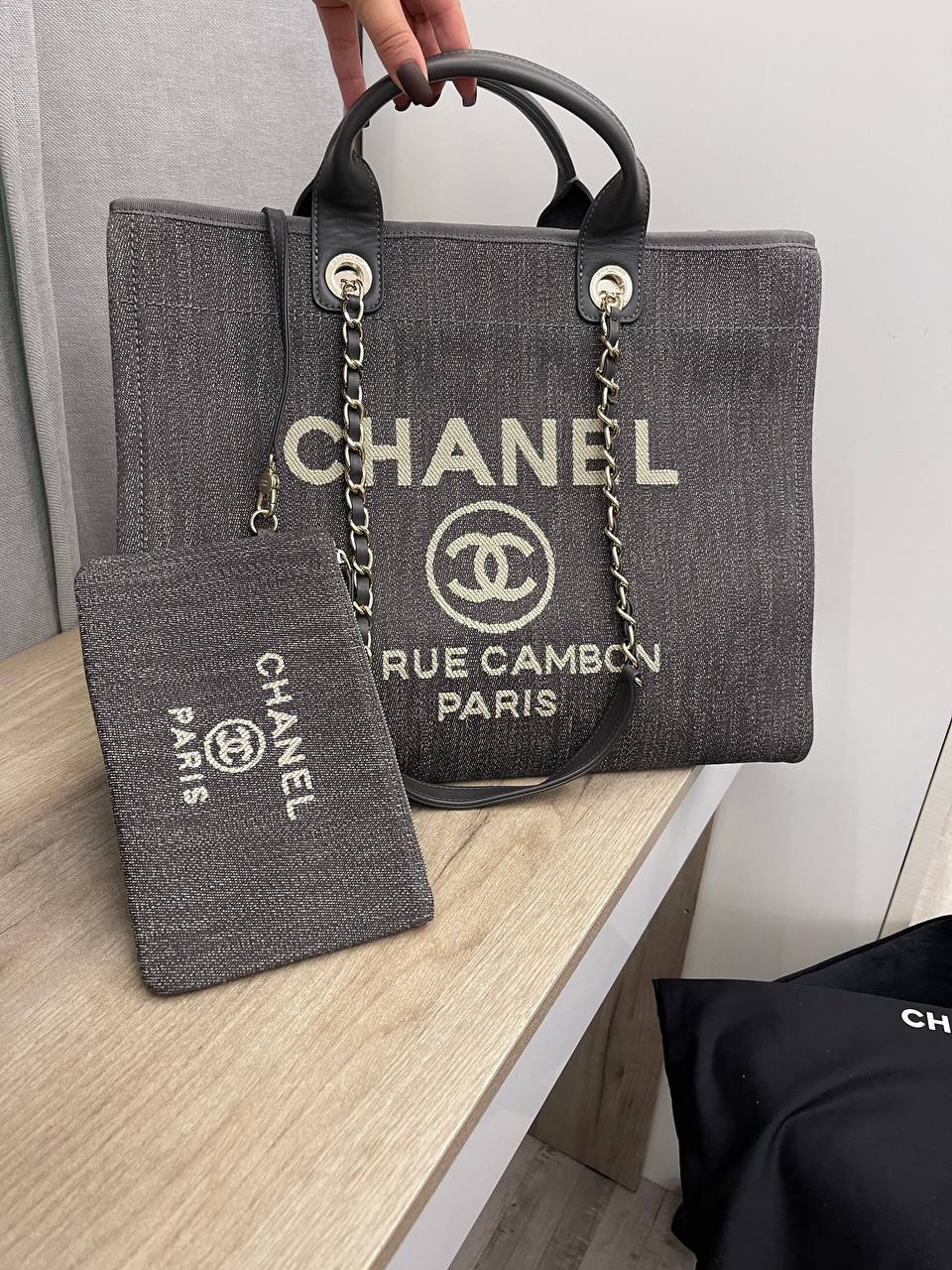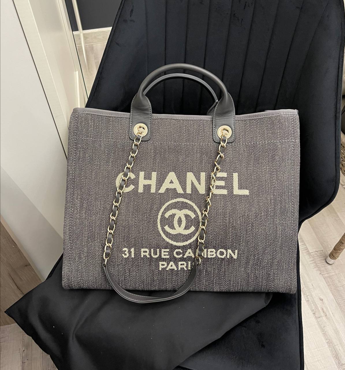 Сумка женская Chanel LUX-97070 представляет собой стильную сумку-шоппер, выполненную в сером цвете с контрастным логотипом бренда. Сумка имеет прямоугольную форму с двумя ручками и цепочкой на плечо, предлагая различные варианты ношения. Идеальный выбор для повседневного использования, а также для создания модных образов.